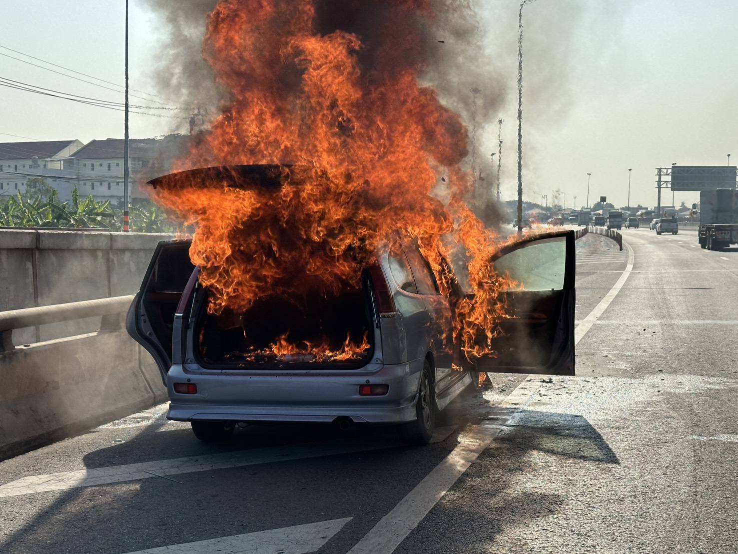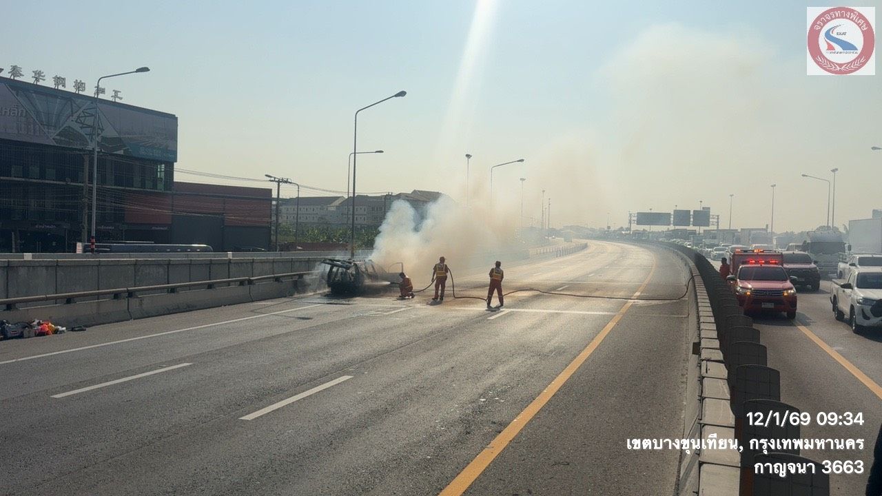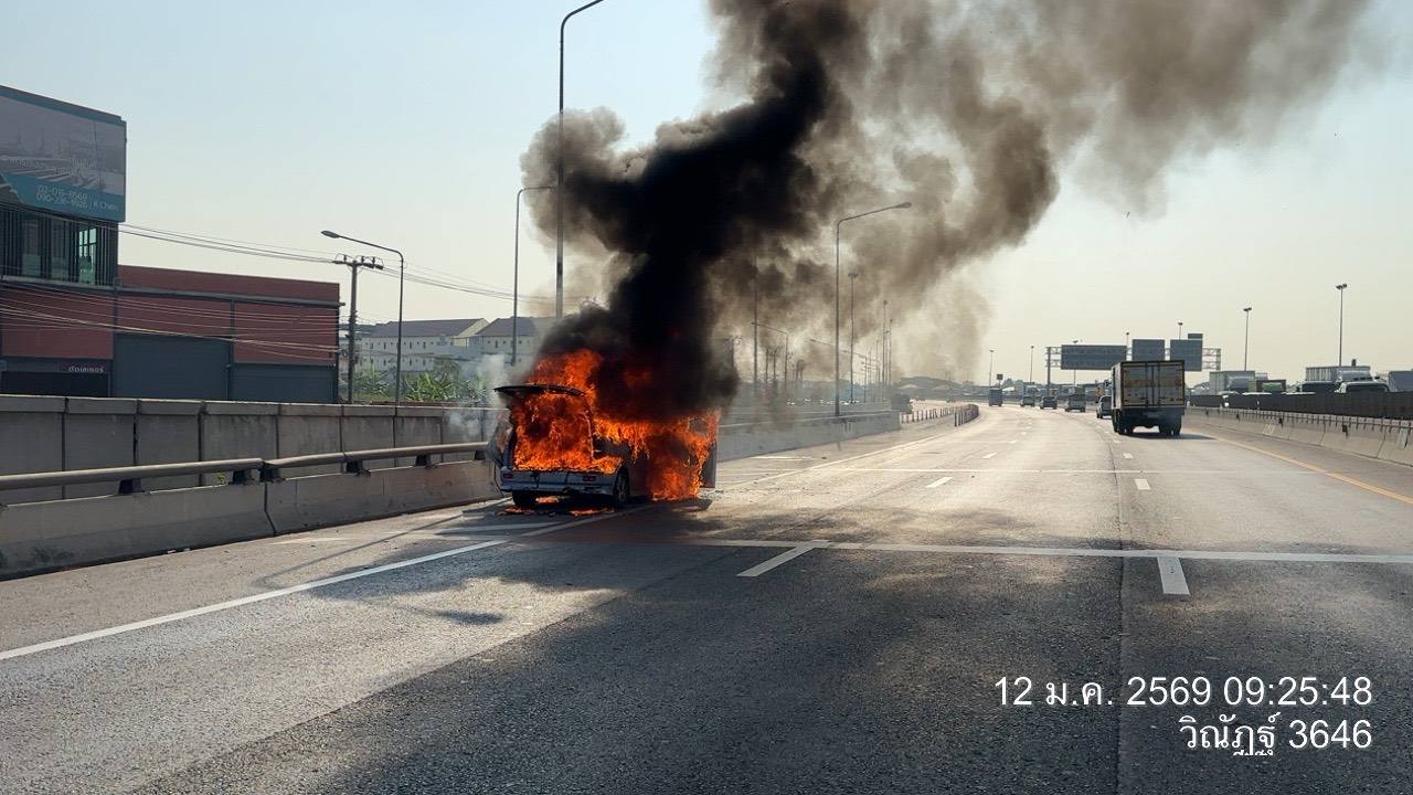 เวลา 09:24 น. วันที่ 12 มกราคม 2569 เกิดเหตุเพลิงไหม้รถนั่งบุคคล บนทางพิเศษกาญจนาภิเษก (บางพลี-สุขสวัสดิ์) บริเวณ กม.12+900B มาจากบางขุนเทียนมุ่งหน้าบางครุ เลยด่านบางขุนเทียน เล็กน้อย กีดขวางช่องทางซ้าย การจราจรติดขัดแล้ว ท้ายแถวสะสมหน้าด่านบางขุนเทียน และฝั่งกับกันมีชะลอดูเหตุการณ์ รถติดเช่นกัน ท้ายแถวสะสมเหนือถนนบางขุนเทียน