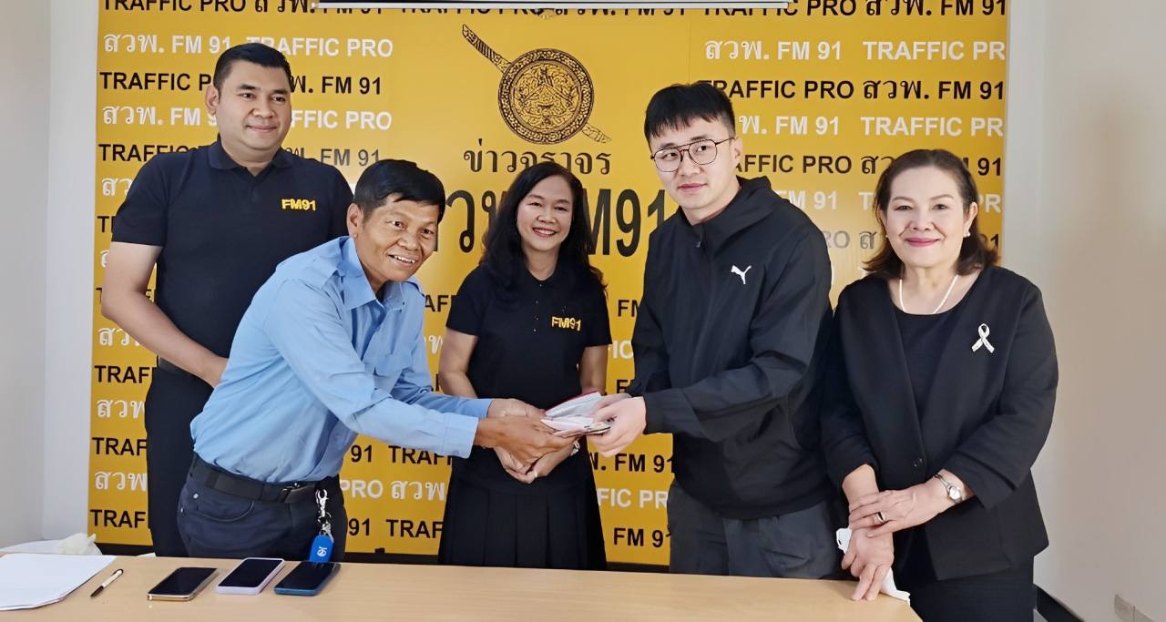 วันนี้ (12 มกราคม 2569) ที่สถานีวิทยุพิทักษ์สันติราษฎร์ สวพ.FM91 กองตำรวจสื่อสาร สำนักงานตำรวจแห่งชาติ ถนนพหลโยธิน แขวงลาดยาว เขตจตุจักร กทม. ดร.ไจตนย์ ศรีวังพล รองกรรมการผู้จัดการ บริษัท วิไลเซ็นเตอร์แอนด์ซันส์ จำกัด ผู้ร่วมดำเนินงานสถานีวิทยุ สวพ.FM91 คุณสกล ถาวรกาญจน์ ประธานเจ้าหน้าที่บริหารฝ่ายสื่อสารองค์กร และ คุณจิตต์ผ่องใส ศรีวังพล ผู้อำนวยการฝ่ายทรัพยากรบุคคลและจิตอาสาสัมพันธ์ ร่วมเป็นสักขีพยาน ส่งมอบเงินสดและทรัพย์สิน มูลค่ากว่า 1 แสนบาท ส่งคืนเจ้าของชาวจีน