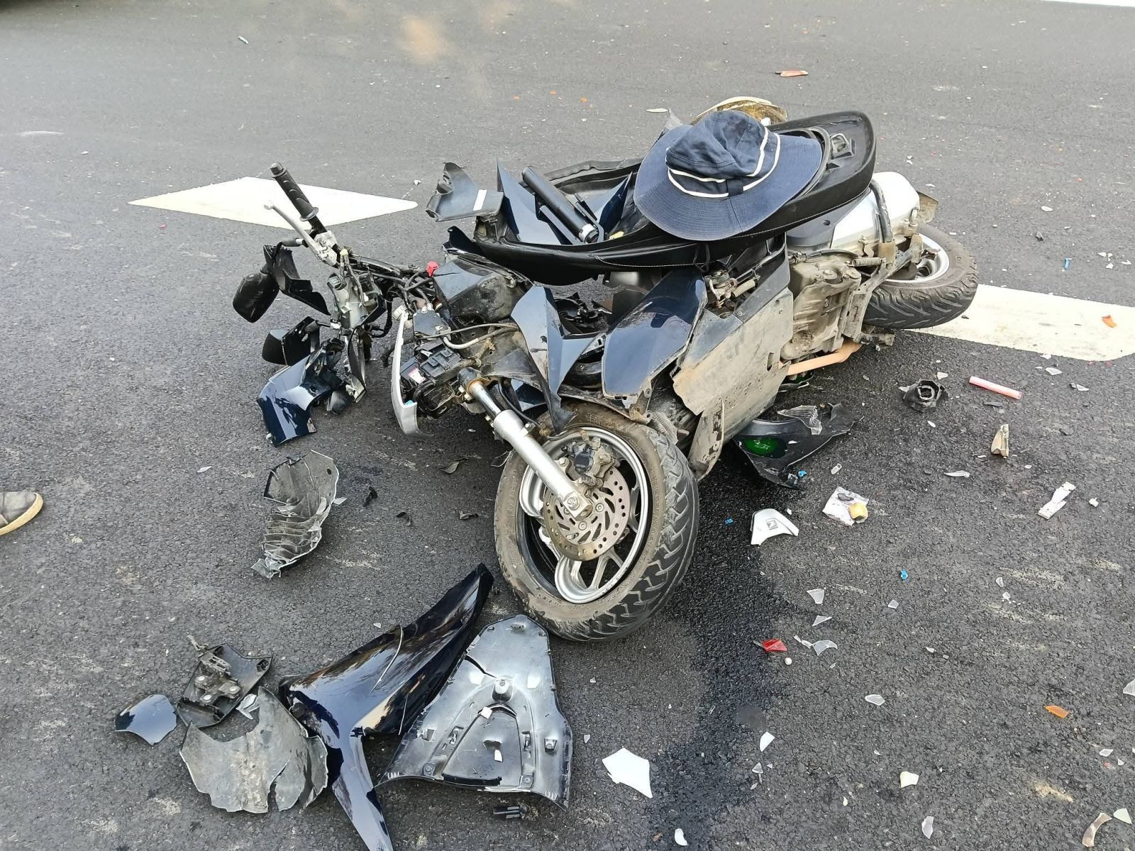 ที่เกิดเหตุ พบรถกระบะ นิสสัน สีเทา สระบุรี, รถจักรยานยนต์ ฮอนด้า สีขาว-ดำ ป้ายทะเบียน สิงห์บุรี และ รถบรรทุก ฮีโน่ สีขาว ป้ายทะเบียน สระบุรี