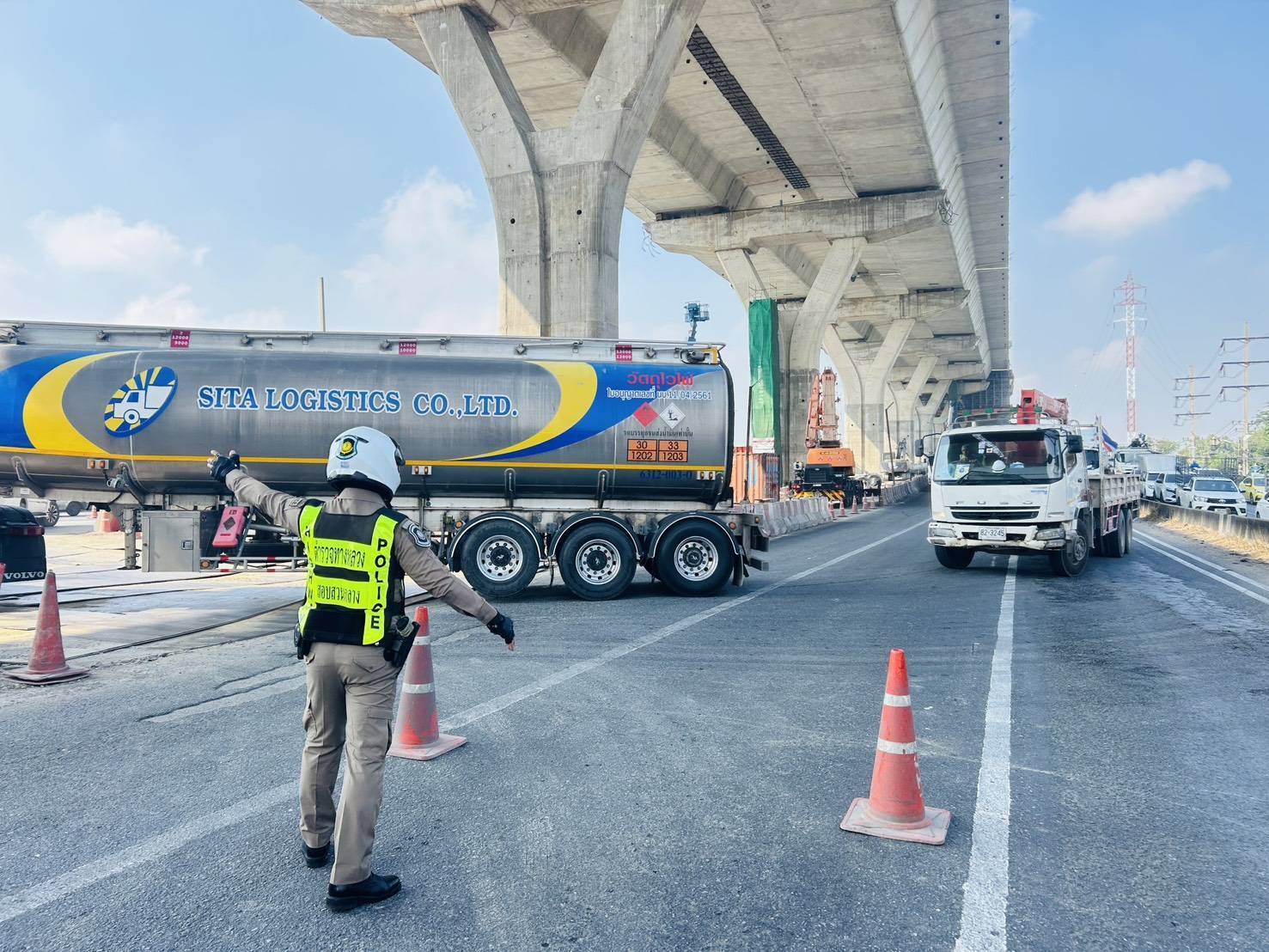 ปิดถนนพระราม 2 ช่องทางหลักขาเข้าและออก ทางหลักกลับรถ เหตุเครนถล่ม!