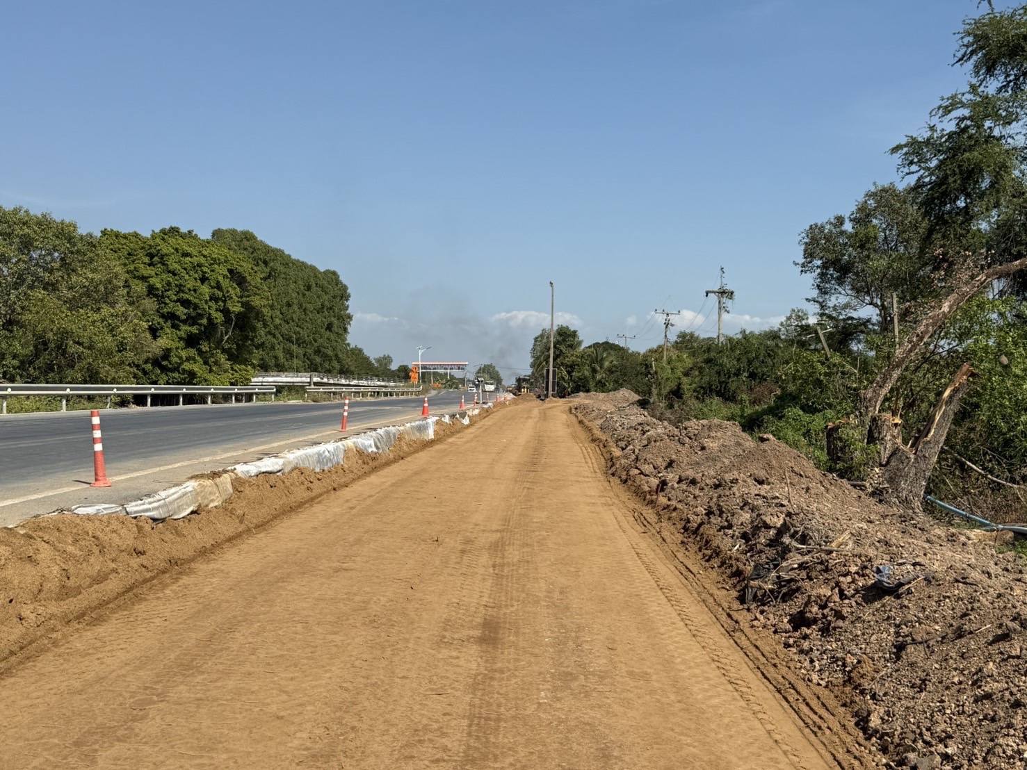 ขณะนี้อยู่ในขั้นตอนการถางป่า งานทรายถมคันทาง งานรองพื้นทาง โดยโครงการก่อสร้างถนนสายนี้คาดว่าแล้วเสร็จสมบูรณ์ในปี 2570 โดยการก่อสร้างมีจุดเริ่มต้นโครงการ กม.ที่ 0+000 (บริเวณสะพานเทพกุญชร และไปสิ้นสุดโครงการ กม.ที่ 32+655 (บริเวณประตูระบายน้ำปากคลองแยก 1 ขวา) มีรายละเอียดการก่อสร้าง ดังนี้