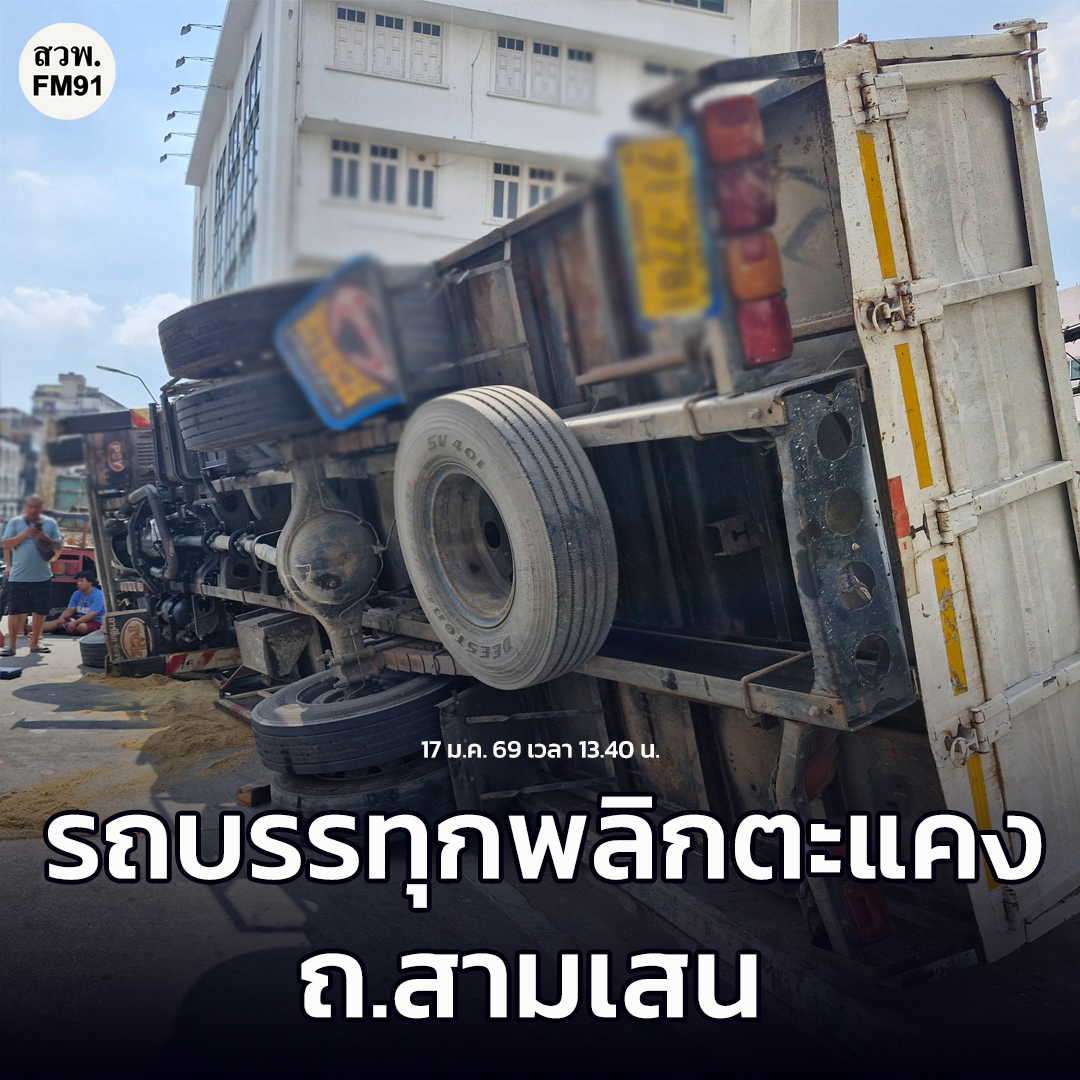 17 ม.ค. 69 เวลา 13.40 น. เพจเฟซบุ๊ก "สำนักงานเขตพระนคร" เกิดอุบัติเหตุ รถบรรทุกพลิกตะแคง บริเวณสะพานนรรัตน์สถาน ถ.สามเสน