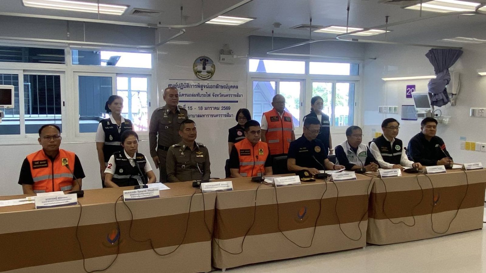 วันนี้ (18 ม.ค. 69) เวลา 11.00 น. นายอนุพงศ์ สุขสมนิตย์ ผู้ว่าราชการจังหวัดนครราชสีมา พร้อมด้วย นายวิจิตร กิจวิรัตน์ รองผู้ว่าราชการจังหวัดนครราชสีมา นำเจ้าหน้าที่ที่เกี่ยวข้องร่วมกันแถลงข่าวปิดศูนย์ปฏิบัติการพิสูจน์เอกลักษณ์บุคคลเหตุการณ์เครนถล่มทับรถไฟ จ.นครราชสีมา ณ โรงพยาบาลมหาราชนครราชสีมา