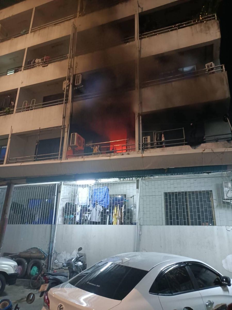 เพลิงไหม้บนอาคาร ซอยอ่อนนุช 25 เสียหายทั้งห้อง มีผู้ได้รับบาดเจ็บถูกไฟลวก อาสากู้ภัยนำส่ง รพ.