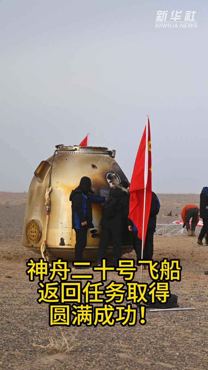 จิ่วเฉวียน, 19 ม.ค. ซินหัว รายงานว่า -- องค์การอวกาศที่มีมนุษย์ควบคุมแห่งประเทศจีนเปิดเผยว่าแคปซูลส่งกลับของยานอวกาศเสินโจว-20 (Shenzhou-20) ซึ่งไม่ได้บรรทุกนักบินอวกาศ ได้ลงจอดบริเวณพื้นที่ลงจอดตงเฟิงในเขตปกครองตนเองมองโกเลียในทางตอนเหนือของจีน ตอน 09.34 น. ของวันจันทร์ (19 ม.ค.) ตามเวลาปักกิ่ง