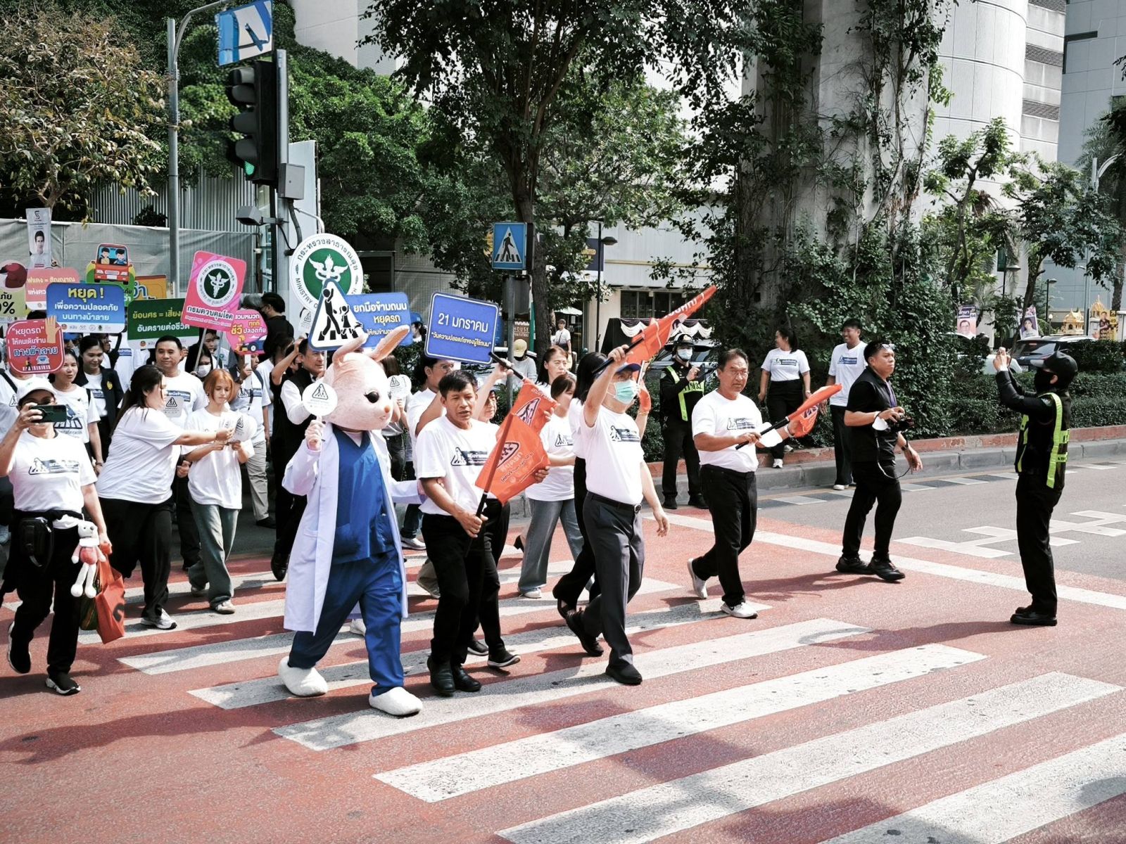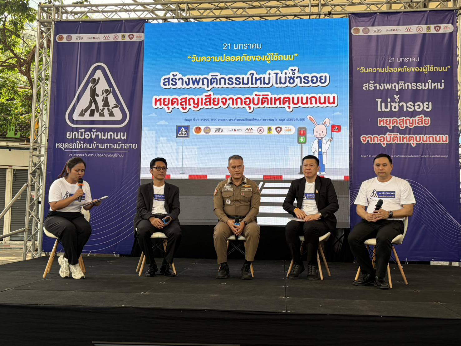 วันที่ ( 21 มกราคม 2569) ณ ลานด้านหน้าโรงพยาบาลสถาบันโรคไตภูมิราชนครินทร์ ถนนพญาไท เขตราชเทวี กรุงเทพฯ มูลนิธิเมาไม่ขับ สำนักงานกองทุนสนับสนุนการสร้างเสริมสุขภาพ (สสส.) สำนักงานตำรวจแห่งชาติ เครือข่ายพัฒนาคุณภาพชีวิต และภาคีเครือข่ายรณรงค์ลดอุบัติเหตุทางถนนภาครัฐ ภาคเอกชน ได้ร่วมกันจัดการแถลง ข่าวโครงการ “กี่คันได้ข้าม” เนื่องในวันความปลอดภัยผู้ใช้ถนน โดยมี นายสุรชัย เลี้ยงบุญเลิศชัย อดีตสมาชิกวุฒิสภา พล.ต.ต.ธวัช วงศ์สง่า รอง ผู้บัญชาการตำรวจนครบาล นายสิทธิพร สมคิดสรรพ์ ผู้อำนวยการสำนักการจราจรและขนส่ง กรุงเทพมหานคร คุณแม่รัชนี สุภวัตรจริยากุล มารดาแพทย์หญิงวราลัคน์ สุภวัตรจริยากุล (หมอกระต่าย) นายแพทย์ แท้จริง ศิริพานิช เลขาธิการมูลนิธิเมาไม่ขับ อาจารย์ภานุวัฒน์ สัจจะวิริยะกุล จาก Nudge Thailand เป็นผู้แถลงข่าว รายละเอียดของโครงการ