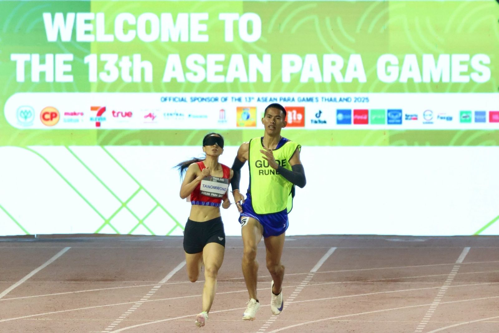 สุนีย์ภรณ์ ถนอมวงค์ ลมกรดสาวพาราไทย ควงไกด์รันเนอร์ ทะยานเข้าเส้นชัยเป็นอันดับ 1 ด้วยเวลา 1.12.21 นาที คว้าเหรียญทองไปครอง ในการแข่งขันวิ่ง 400 เมตร หญิง คลาส T11