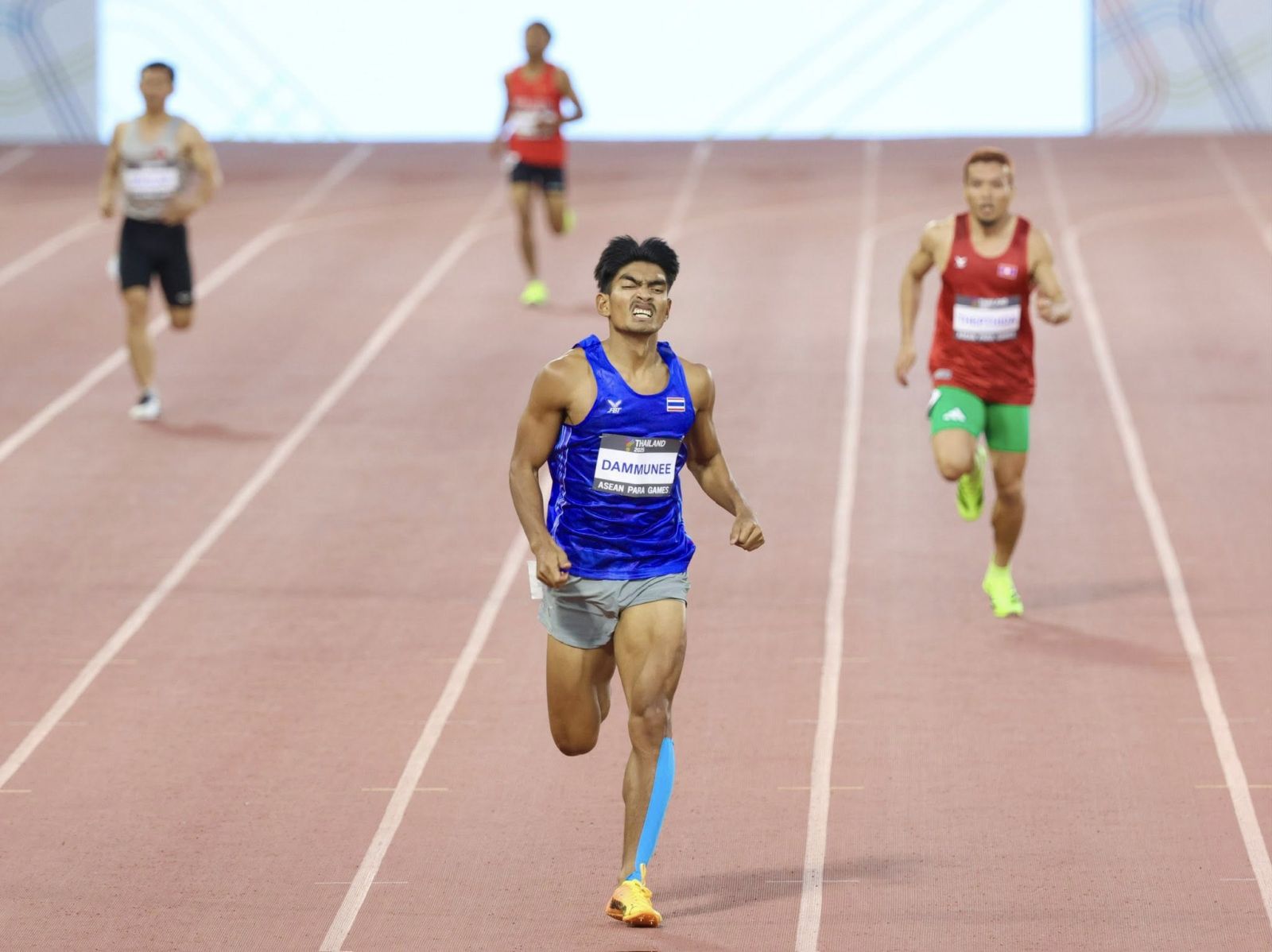 ขณะที่ อมรเทพ ผลปันนะ ลมกรดหนุ่มพาราไทย เร่งฝีเท้านำเดี่ยว ก่อนทะยานเข้าเส้นชัยเป็นคนแรกเป็นคนแรก ทำเวลา 31.42 วินาที คว้าเหรียญทองในการแข่งขันวิ่ง 200 เมตรชาย คลาส T38