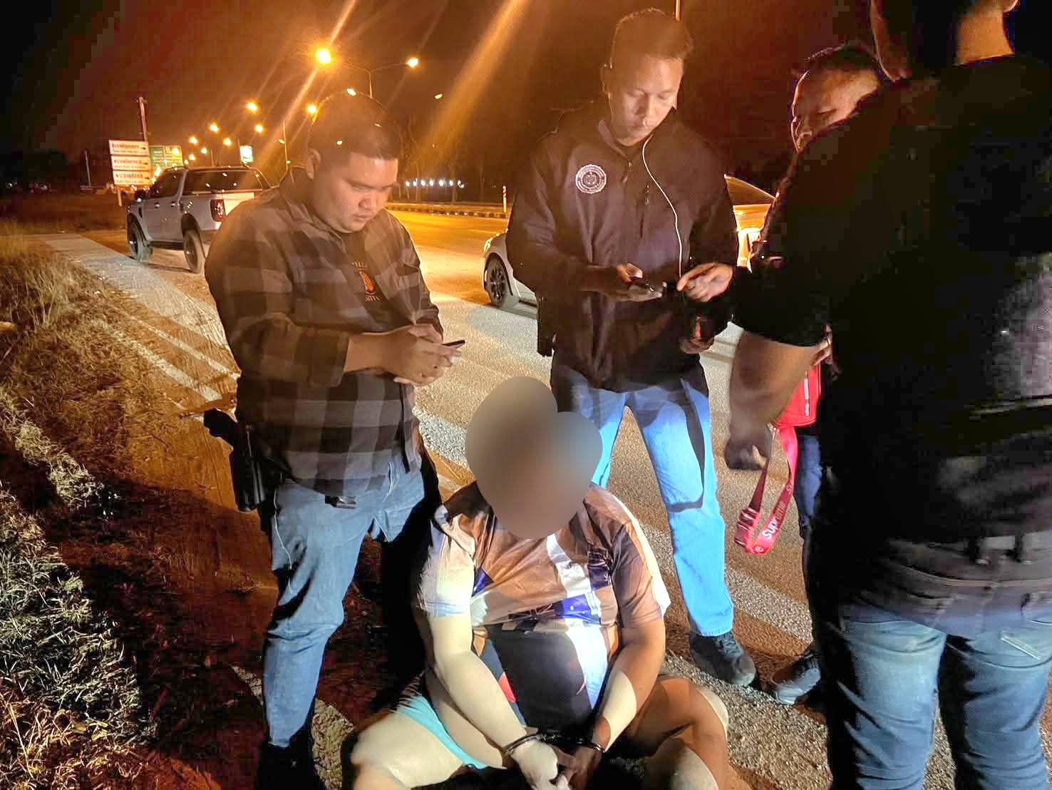 กระทั่งพบรถยนต์ต้องสงสัย ยี่ห้อฮอนด้า สีน้ำตาล ทะเบียนแพร่ ปรากฏตัวบริเวณ จุดยูเทิร์นบ้านประทุม ถนนสายแพร่–น่าน ก่อนแสดงตัวเข้าสกัดจับ สามารถควบคุมตัว ชาย อายุ 37 ปี ได้ทันที