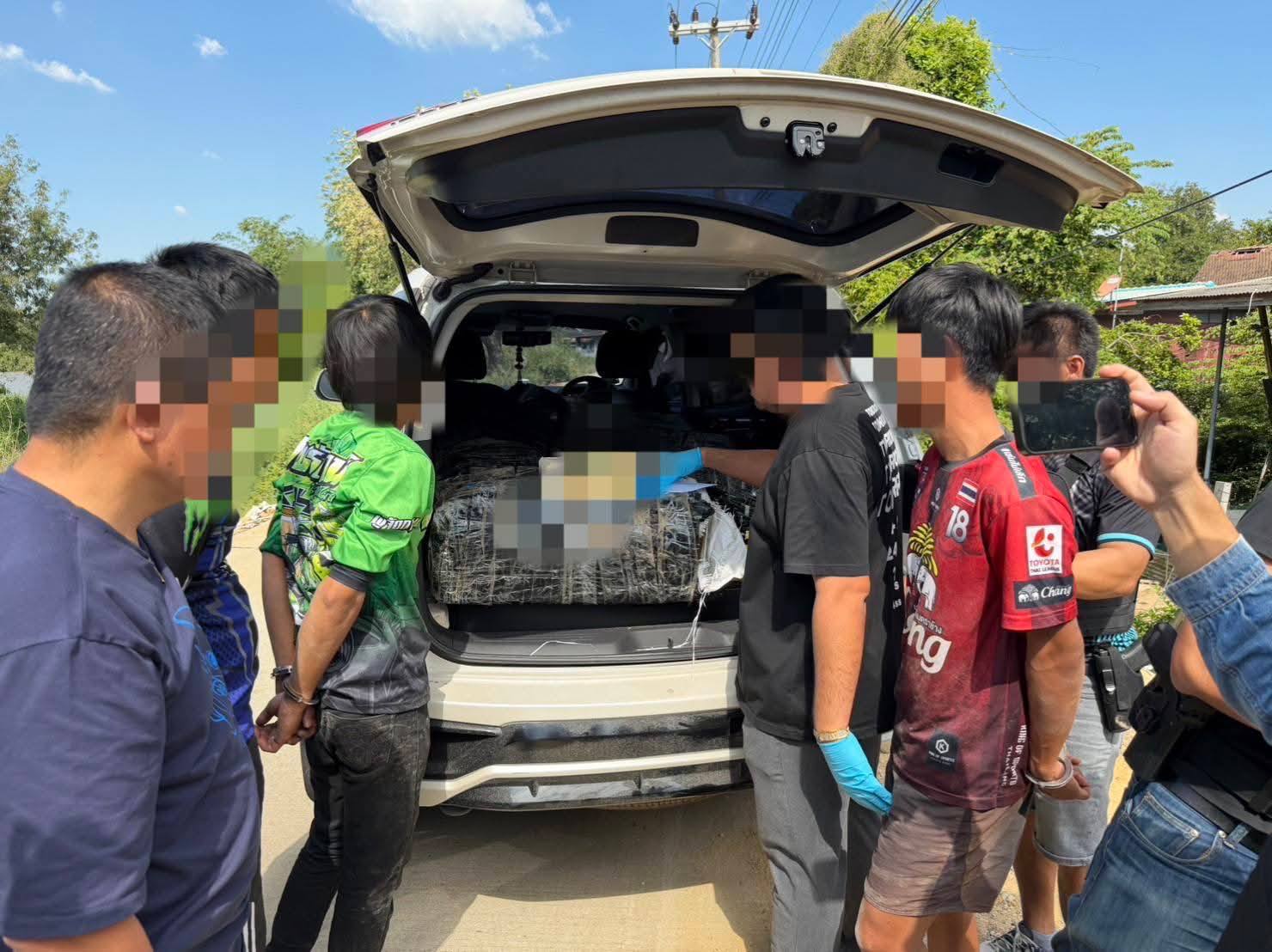 ผู้ต้องหาทั้ง 5 ราย จากการตรวจค้น เจ้าหน้าที่สามารถตรวจยึดของกลางเป็น ยาบ้าบรรจุในกระสอบฟาง 6 กระสอบ รวมประมาณ 2,400,000 เม็ด พร้อมรถยนต์ใช้ในการกระทำความผิด 3 คัน และรถจักรยานยนต์อีก 1 คัน
