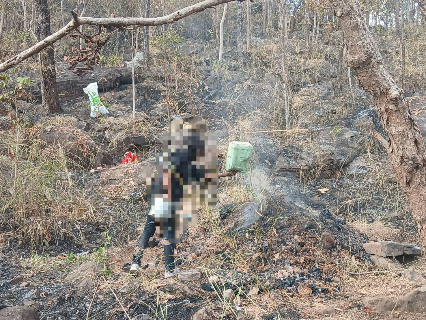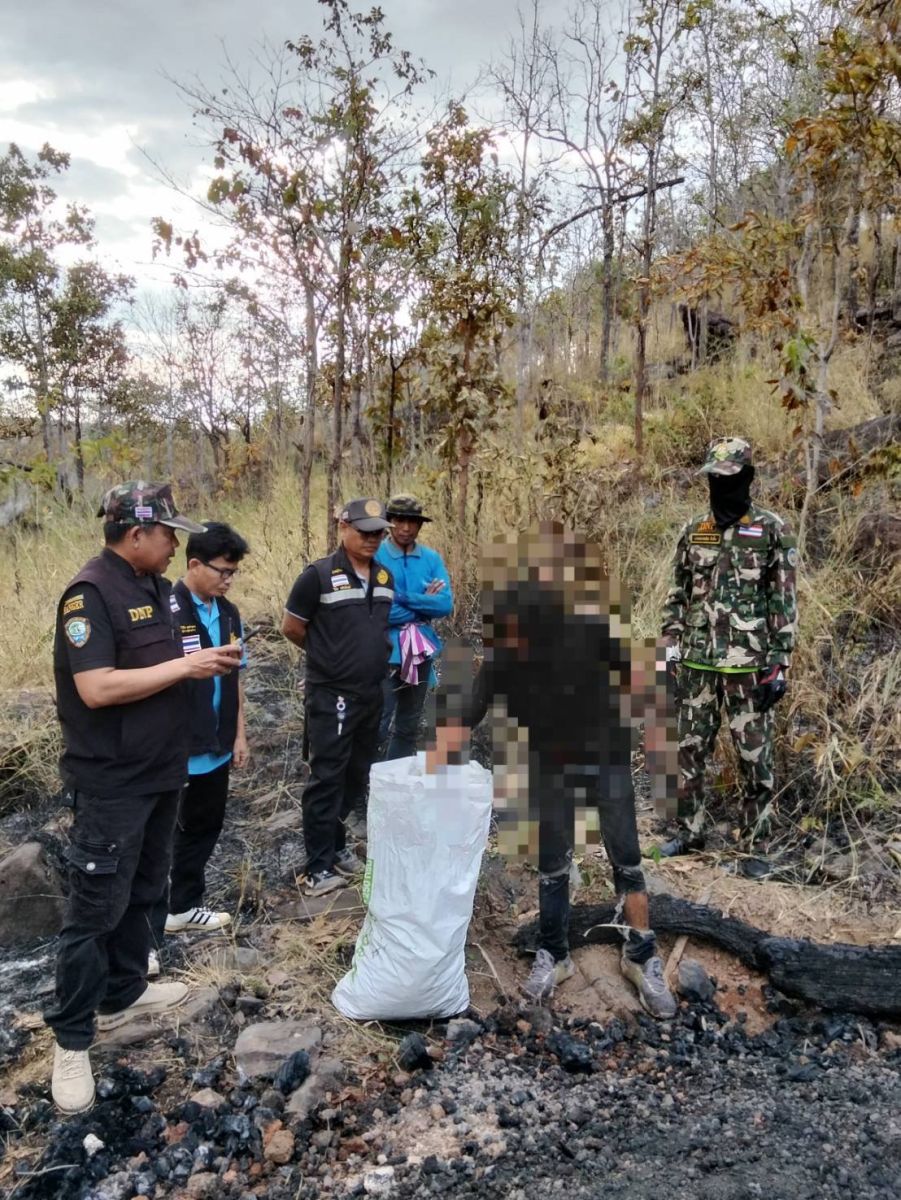 ต่อมาเวลาประมาณ 15.30 น. ขณะเจ้าหน้าที่กำลังระดมฉีดน้ำดับไฟตามแนวรุกไหม้ ได้พบชาย อายุ 40 ปี ภูมิลำเนาชาวอำเภอวังสามหมอ กำลังพยายามดับไฟอยู่ในที่เกิดเหตุ เจ้าหน้าที่จึงได้แสดงตนและเข้าควบคุมตัวเพื่อตรวจสอบ