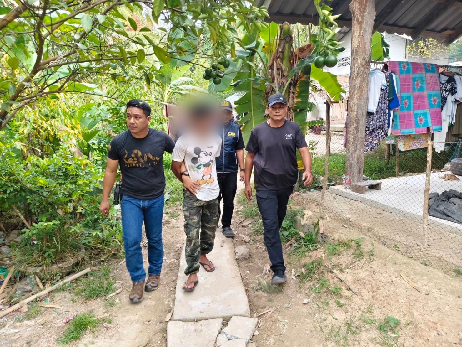 สถานที่จับกุม บริเวณบ้านแห่งหนึ่งใน ต.ปุโรง อ.กรงปินัง จ.ยะลา