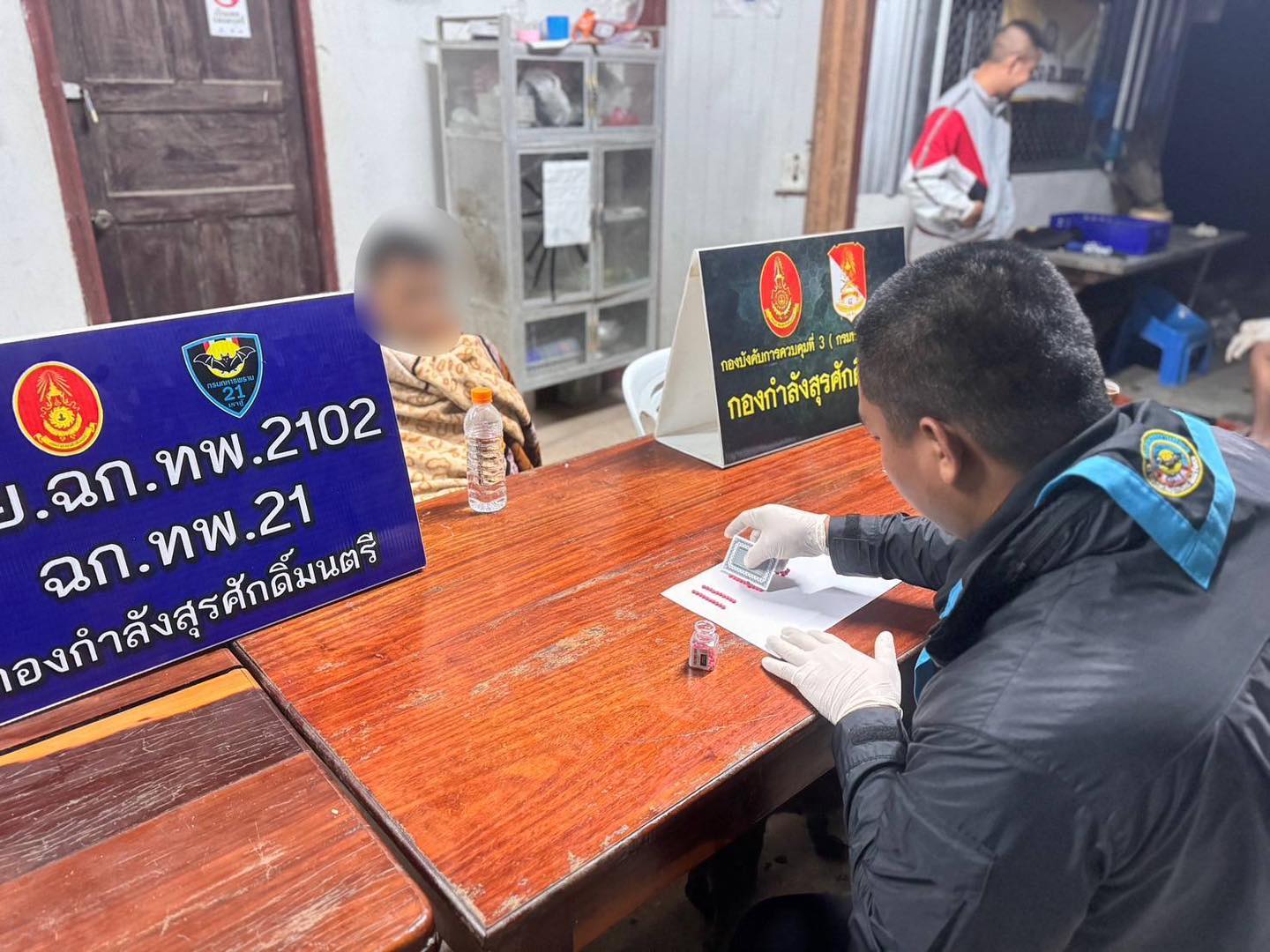 กองร้อยเฉพาะกิจทหารพราน 2102 เฉพาะกิจทหารพราน 21 จัดกำลังพลตรวจสอบพื้นที่ตามที่ได้รับแจ้งว่ามีการมั่วสุมยาเสพติด บ้านนากระเซ็ง ต.อาฮี อ.ท่าลี่ จ.เลย พบนายซี (นามสมมุติ) นั่งอยู่บริเวณหลังบ้าน เจ้าหน้าที่จึงได้ควบคุมตัวและตรวจสอบพบยาเสพติด จำนวน 121 เม็ด ซุกซ่อนอยู่ในกระเป๋าสะพายข้างสีน้ำตาล ผู้ต้องหาให้การยอมรับว่ายาเสพติดที่พบเป็นยาบ้าของตนจริงซื้อมาเพื่อจำหน่ายและเสพเอง จนท.บันทึกภาพไว้เป็นหลักฐาน พร้อมนำผู้กระทำผิด และของกลางส่ง พงส.สภ.โพนทอง เพื่อดำเนินการตามกฎหมายต่อไป