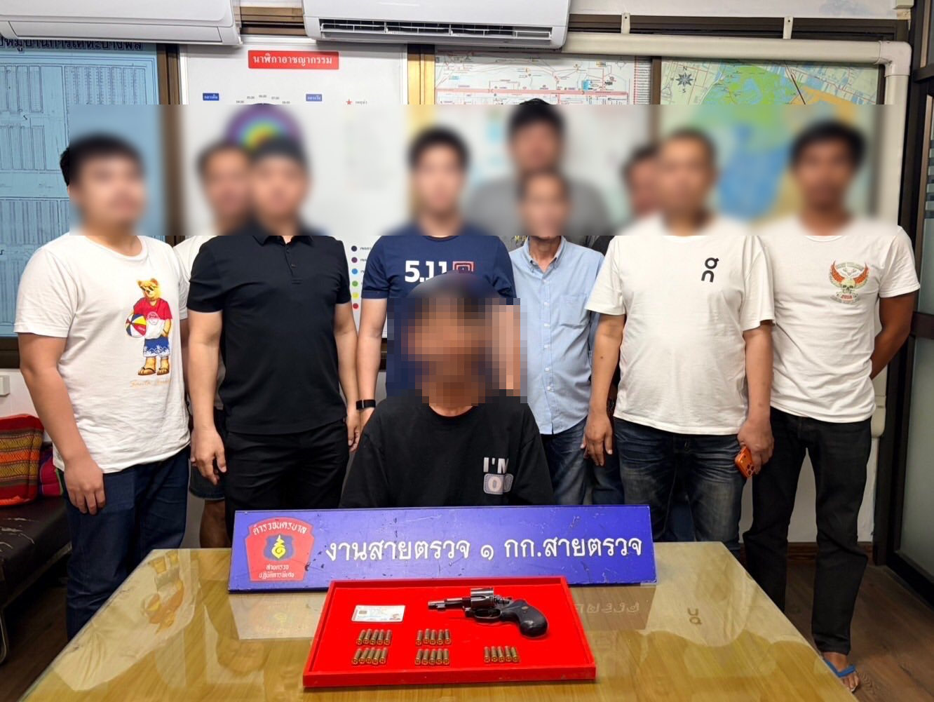 เจ้าหน้าที่ตำรวจงานสายตรวจ 1 กองกำกับการสายตรวจ กองบังคับการสายตรวจและปฏิบัติการพิเศษ (บก.สปพ.) สนธิกำลังตำรวจ สน.ฉลองกรุง และ สภ.บางเสาธง จ.สมุทรปราการ วางแผนจับกุมชาย วัย 38 ปี หลังสืบทราบมีพฤติกรรมลักลอบจำหน่ายอาวุธปืนผ่านสื่อสังคมออนไลน์ นัดส่งมอบภายในปั๊มน้ำมันแห่งหนึ่ง ในพื้นที่ ต.ศีรษะจรเข้ใหญ่ อ.บางเสาธง จ.สมุทรปราการ