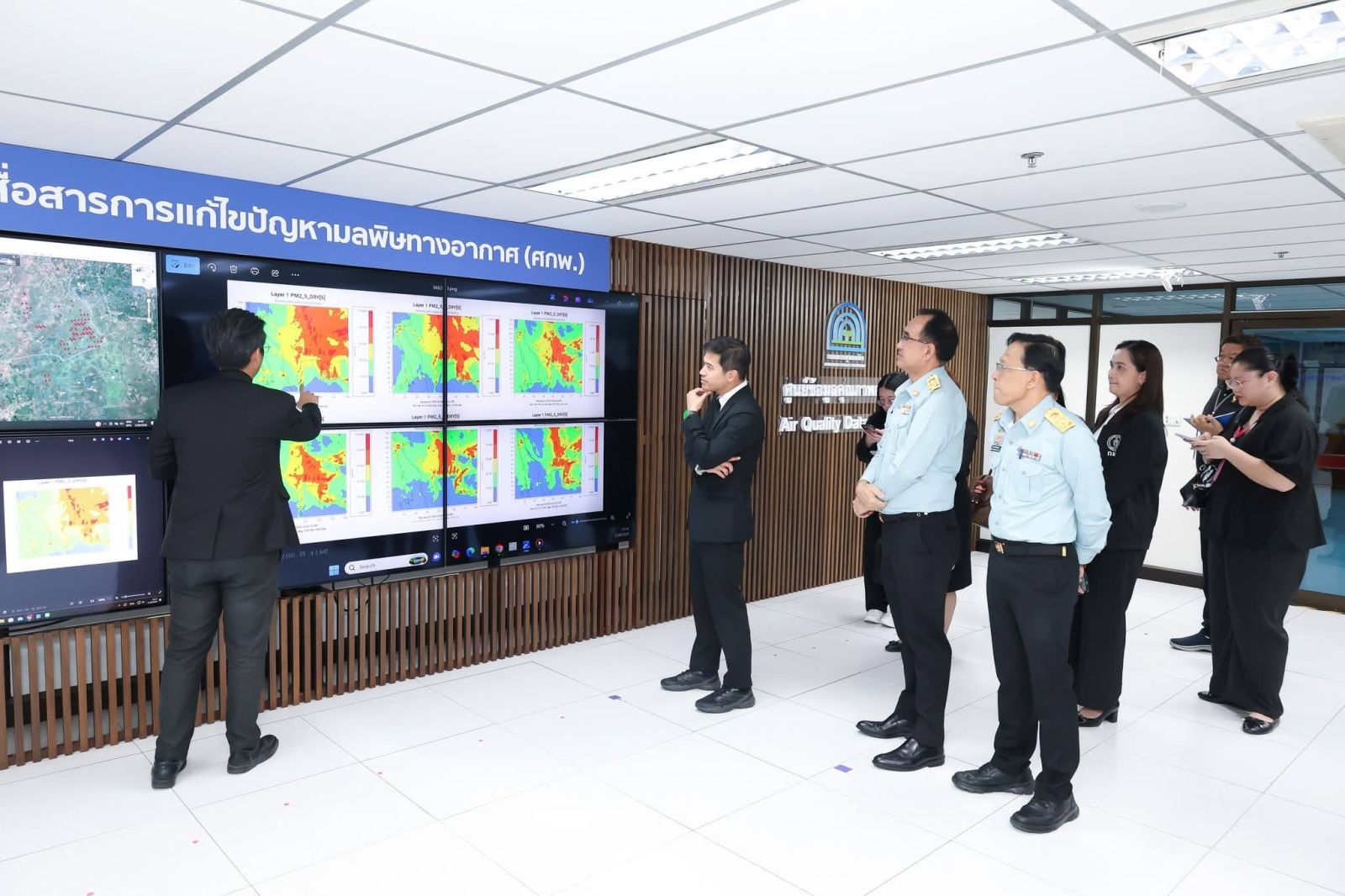 นายสุรินทร์ วรกิจธำรง อธิบดีกรมควบคุมมลพิษ และนายพรพรหม วิกิตเศรษฐ์ ที่ปรึกษาผู้ว่า กทม. ร่วมติดตามสถานการณ์ฝุ่น PM2.5 และความคืบหน้าการแก้ไขปัญหาเพลิงไหม้บริเวณทุ่งนา จ.นครนายก ณ ศูนย์สื่อสารการแก้ไขปัญหามลพิษทางอากาศ (ศกพ.) กำชับทุกหน่วยงาน สร้างความเข้าใจงดกิจกรรมที่ทำให้เกิดฝุ่น เพื่อลดฝุ่นในพื้นที่กรุงเทพมหานคร และปริมณฑล ที่มีแนวโน้มเพิ่มขึ้นวันที่ 29 ม.ค. - 2 ก.พ. 69