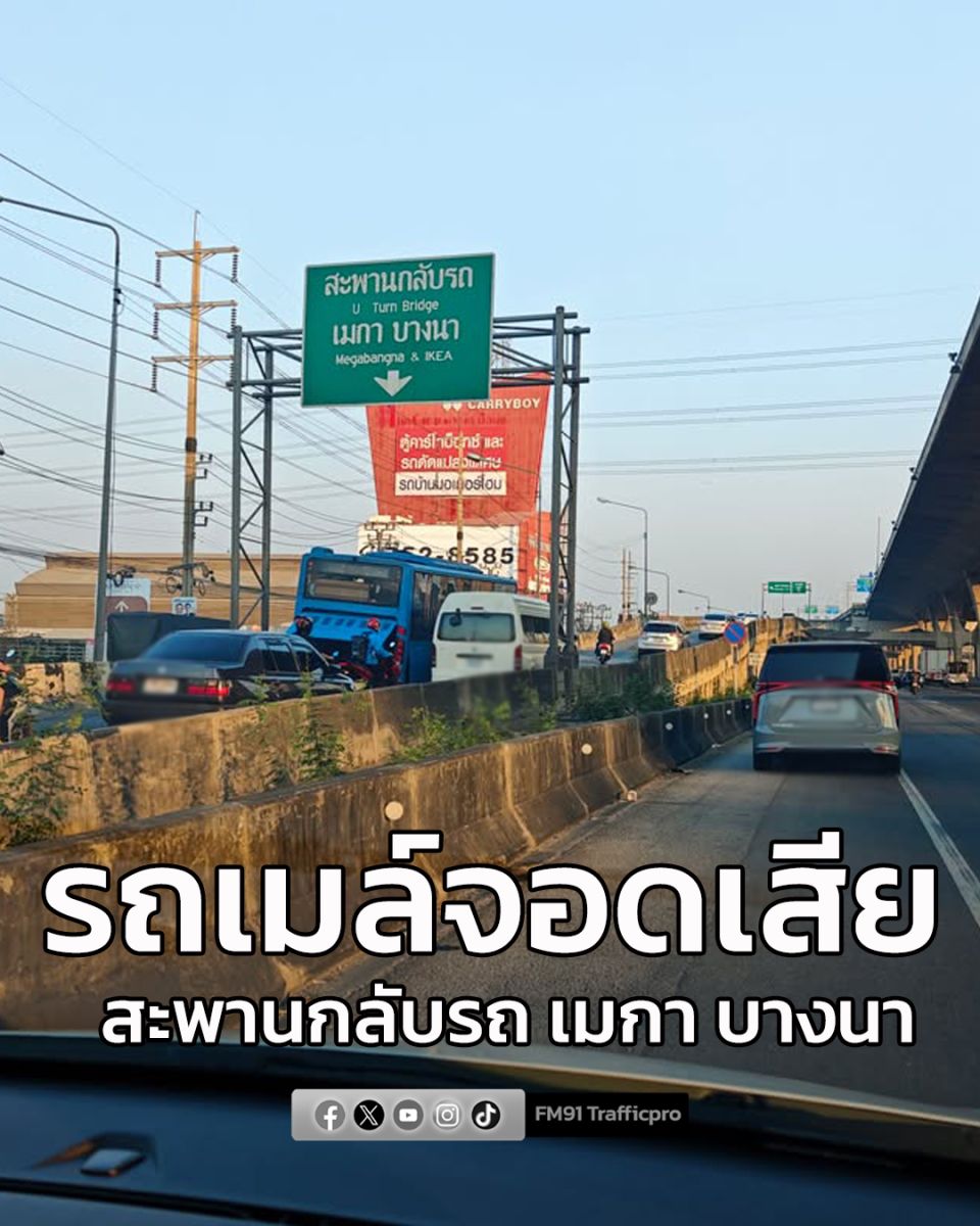 31 ม.ค. 69 เวลา 17.50 น. ถ.เทพรัตน (บางนาตราด) ขาเข้า ทางเข้าตลาดเซฟวันโก บางนา (กม.4) ท้ายอยู่หน้า เมกา บางนา กลับกัน ขาออก ทางขึ้นสะพานกลับรถ เมกาบางนา รถเมล์จอดเสีย เลนซ้าย ท้ายสะสมถึงกม. 5