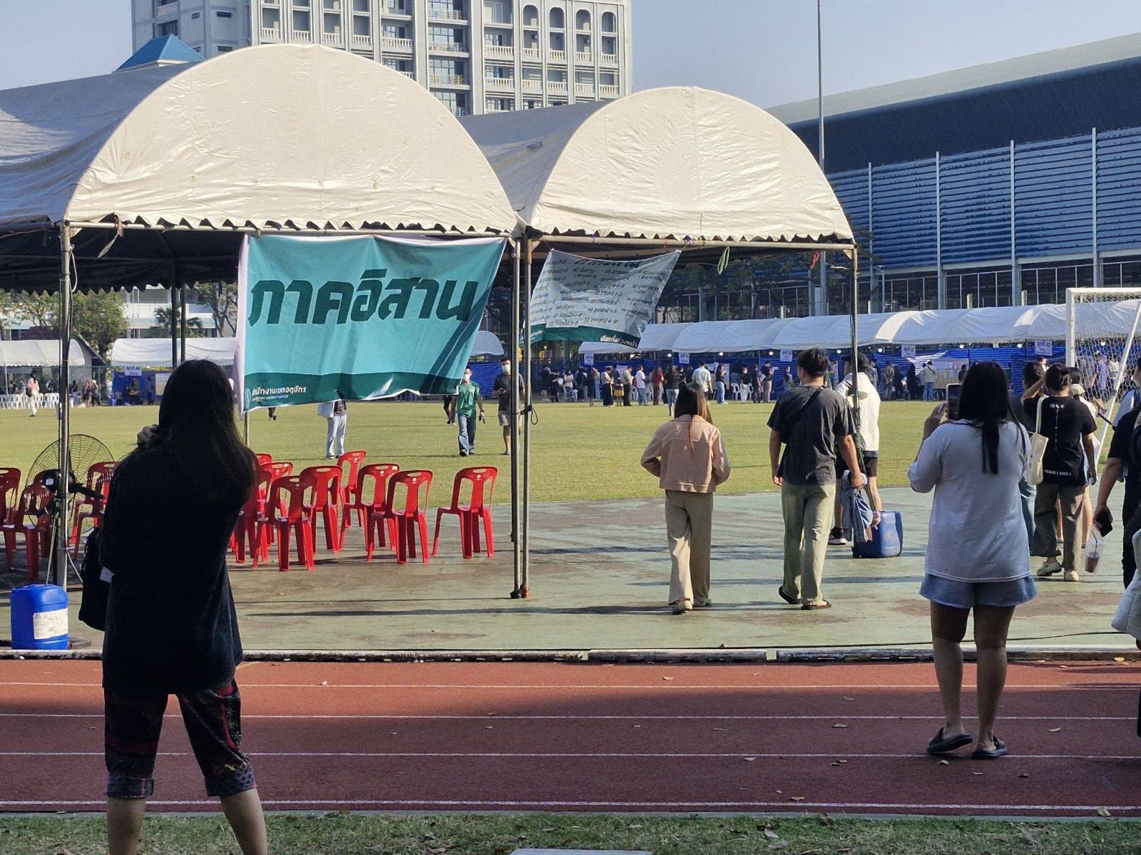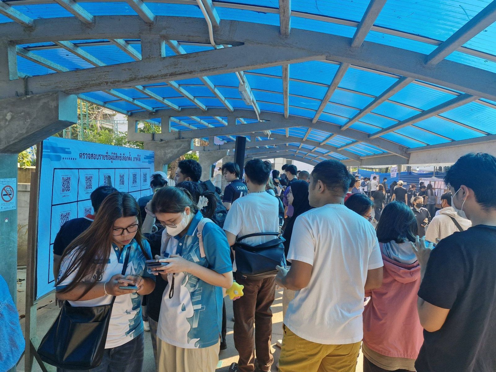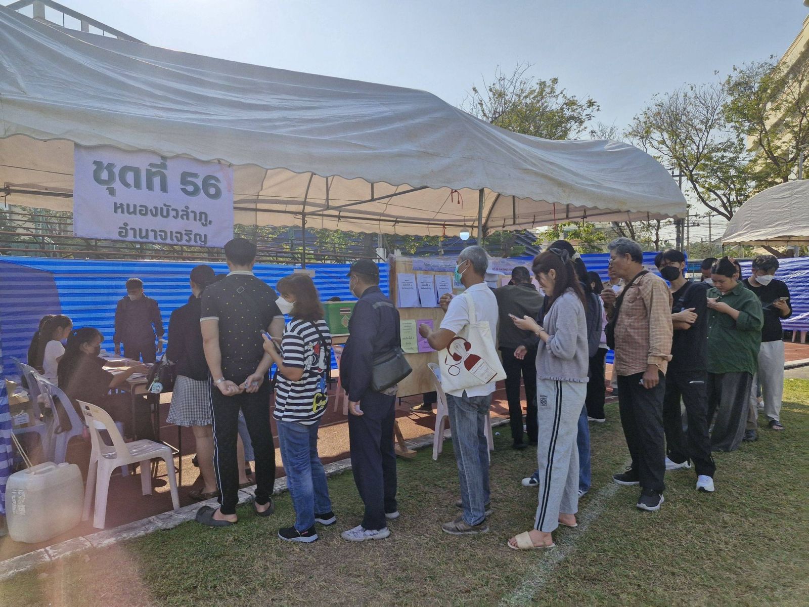 สำหรับประชาชนผู้ที่ลงทะเบียนเลือกตั้งล่วงหน้าไว้ ทยอยเดินทางมาใช้สิทธิ์เลือกตั้ง ตั้งแต่ช่วงเปิดหีบ โดยมีการจัดพื้นที่หน่วยเลือกตั้งโดยรอบมหาวิทยาลัย แบ่งเป็นภูมิภาค กรุงเทพฯและปริมณฑล ภาคตะวันออกภาคตะวันตก ภาคใต้ ภาคอีสาน ภาคกลางและภาคเหนือ ซึ่งมีผู้ลงทะเบียนเลือกตั้งล่วงหน้าไว้ จำนวน 51,826 คน