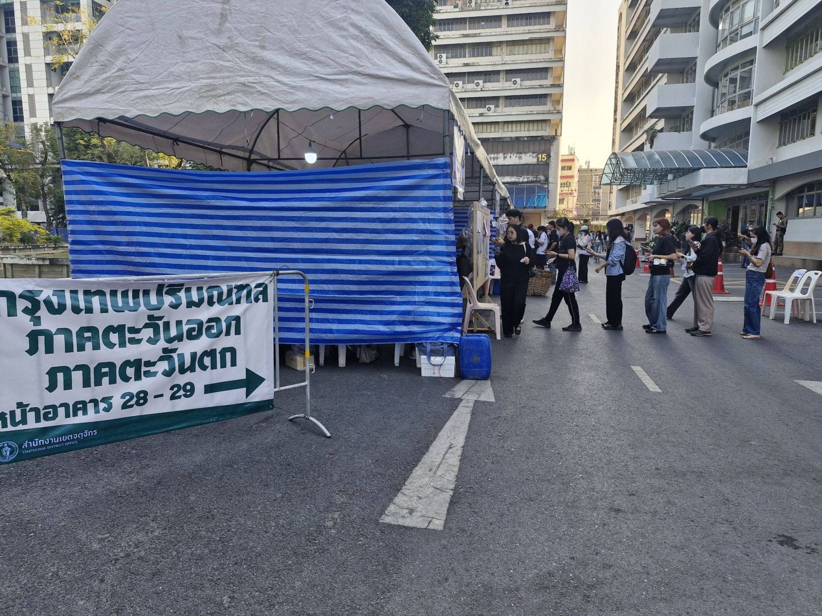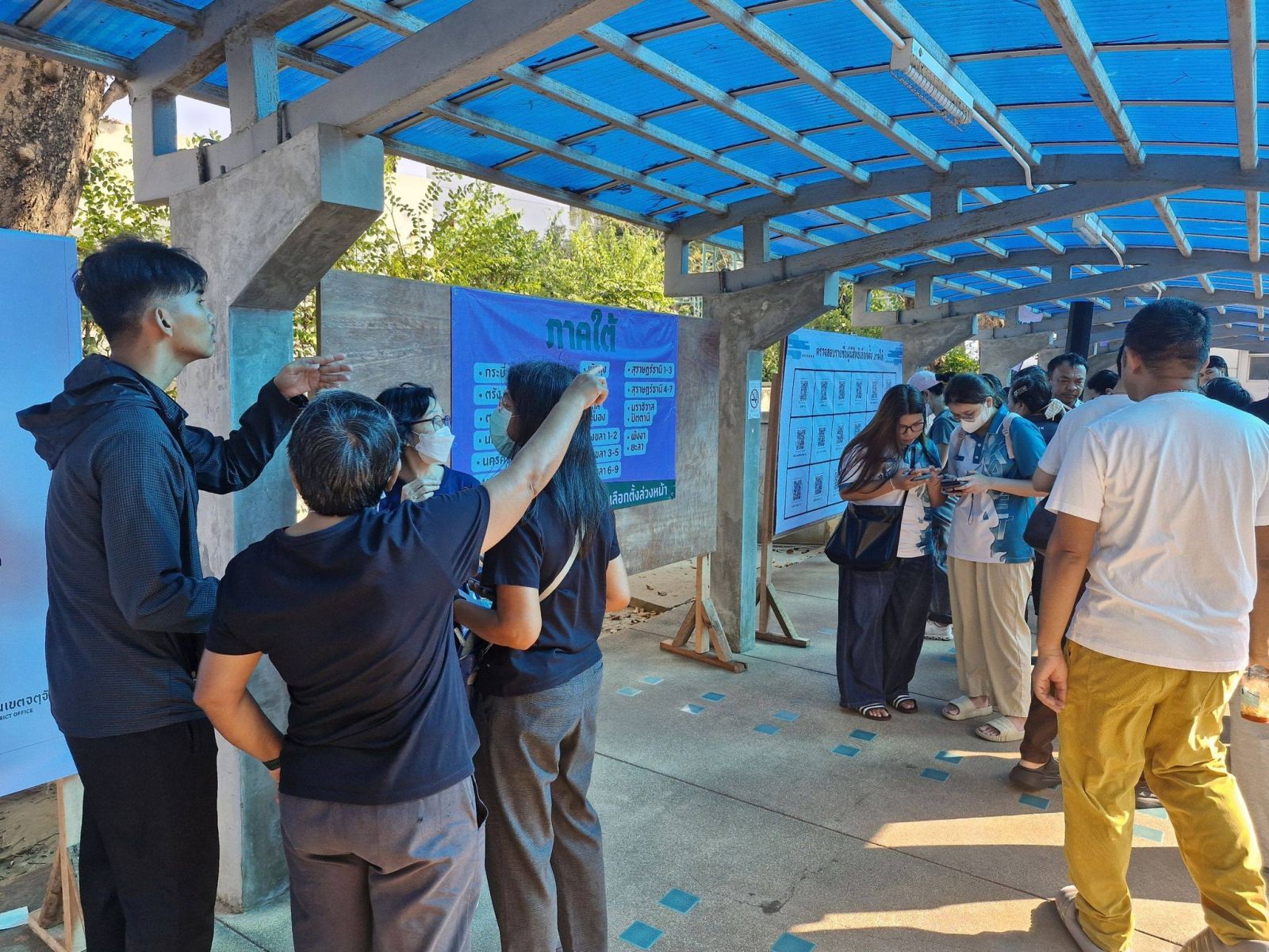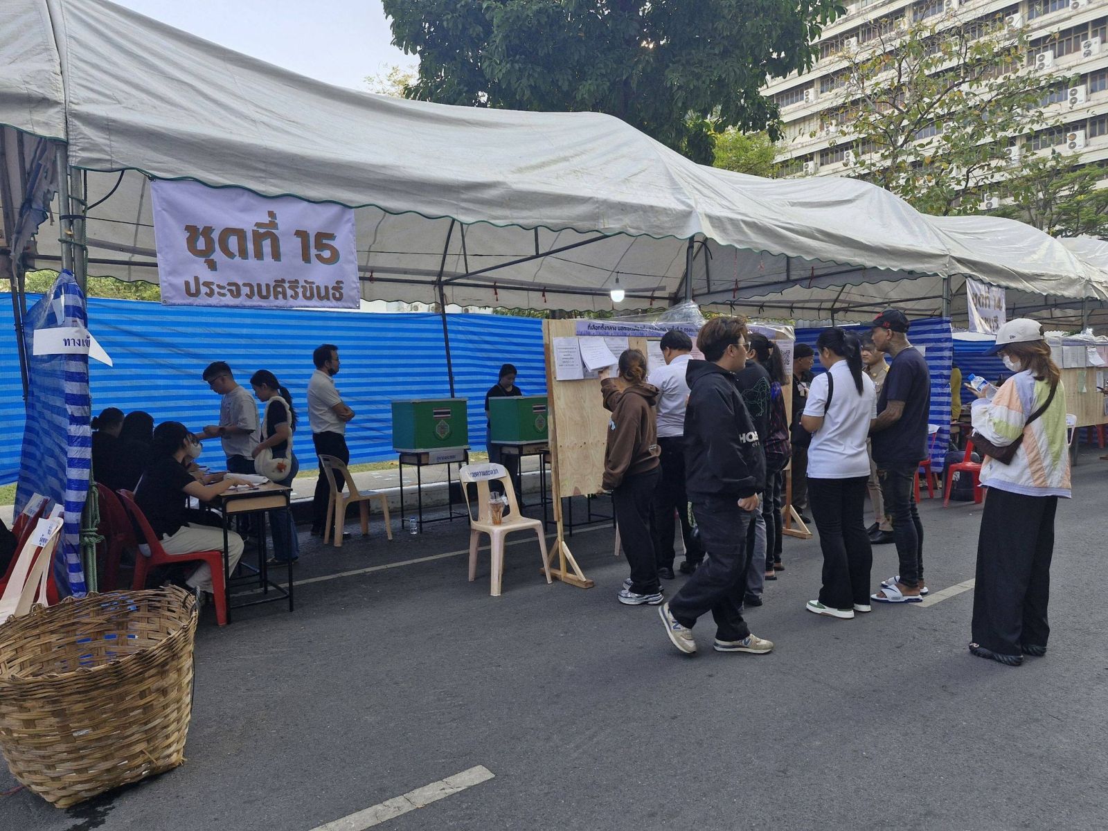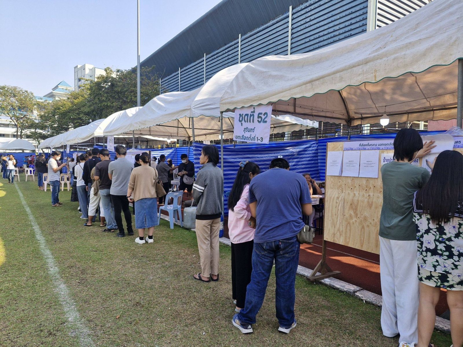 สำหรับประชาชนผู้ที่ลงทะเบียนเลือกตั้งล่วงหน้าไว้ ทยอยเดินทางมาใช้สิทธิ์เลือกตั้ง ตั้งแต่ช่วงเปิดหีบ โดยมีการจัดพื้นที่หน่วยเลือกตั้งโดยรอบมหาวิทยาลัย แบ่งเป็นภูมิภาค กรุงเทพฯและปริมณฑล ภาคตะวันออกภาคตะวันตก ภาคใต้ ภาคอีสาน ภาคกลางและภาคเหนือ ซึ่งมีผู้ลงทะเบียนเลือกตั้งล่วงหน้าไว้ จำนวน 51,826 คน