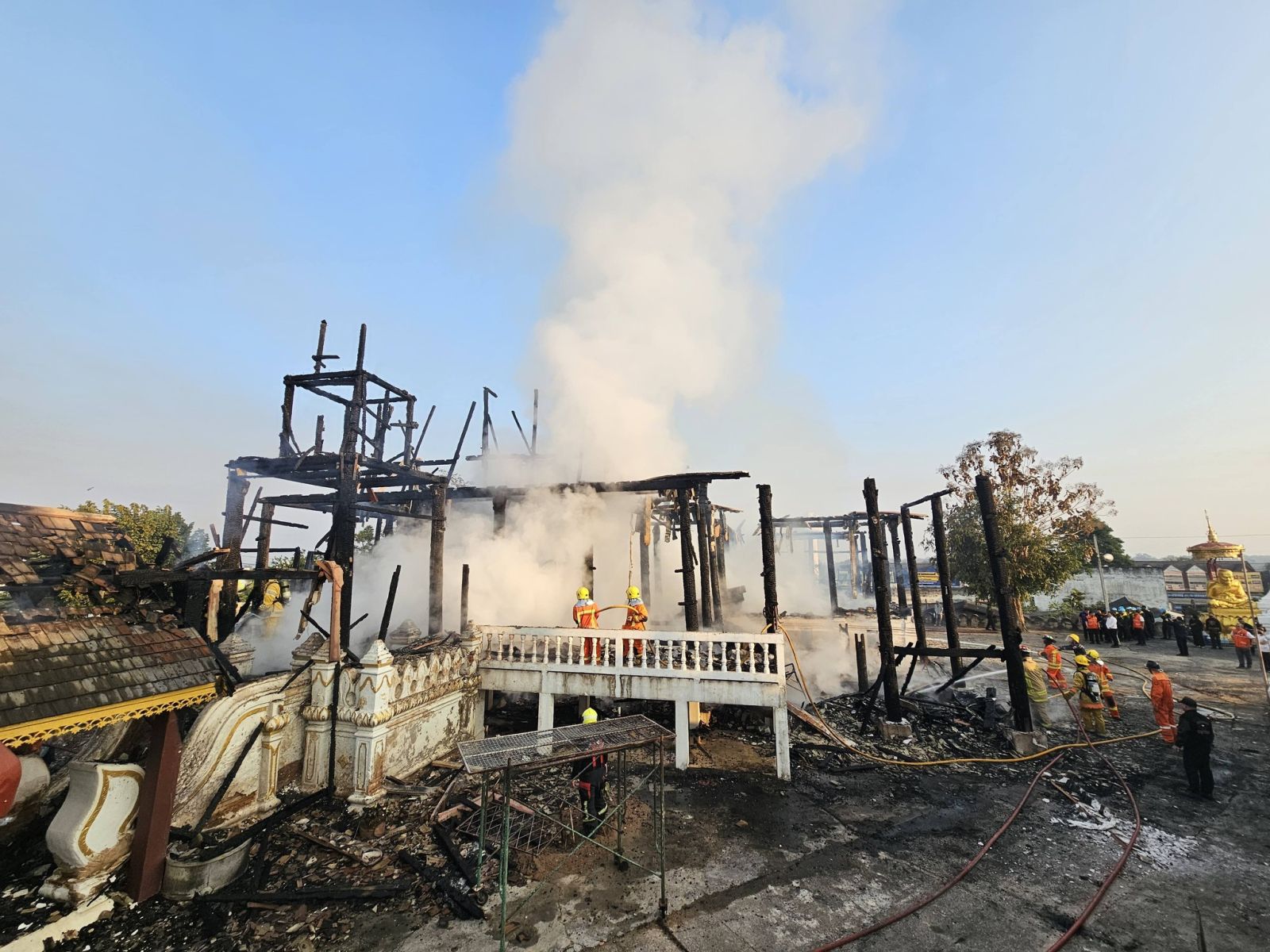 เจ้าหน้าที่ใช้เวลาประมาณ 1 ชั่วโมง จึงสามารถควบคุมเพลิงไว้ได้ ไม่ให้ลุกลามไปยังบ้านเรือนประชาชน ที่อยู่ใกล้ เบื้องต้น ไม่มีรายงานผู้ได้รับบาดเจ็บ หรือเสียชีวิต แต่กุฎิไม้เก่าแก่ได้รับความเสียหายอย่างหนักทั้งหมด