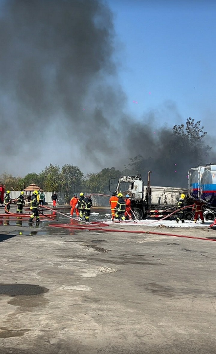 สรุปเหตุเพลิงไหม้ รถบรรทุกน้ำมันเผาวอด 3 คัน คนขับดับ1ราย เสียหายกว่า 50 ล้านบาท