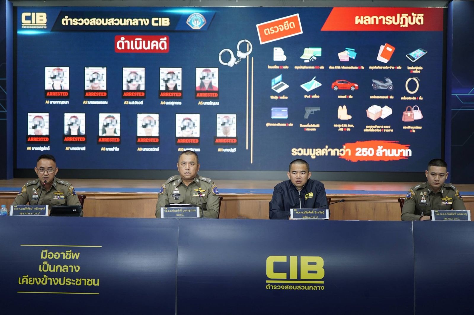 10.บัตรจำนวน ATM/บัตรกดเงินสด จำนวน 12 ใบ และของกลางอื่น ๆ อีกจำนวน 206 รายการ มูลค่ากว่า 250 ล้านบาท