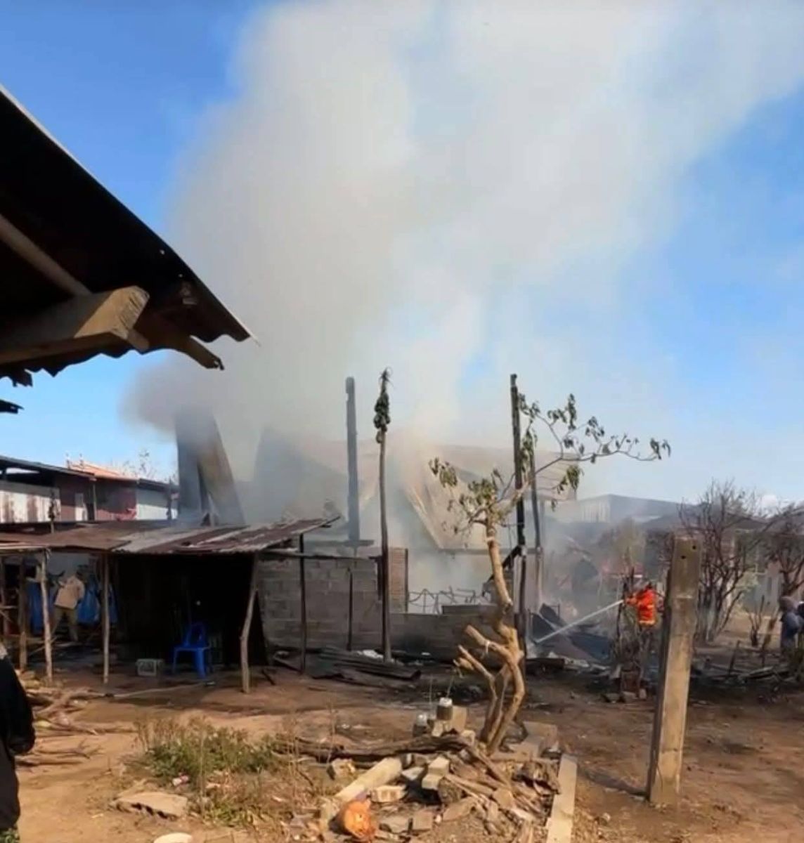 เพลิงไหม้บ้านเรือนประชาชน ที่บ้านดินดำ แล้วลุกลามหลังข้างเคียงเสียหายวอด จ.ศรีสะเกษ