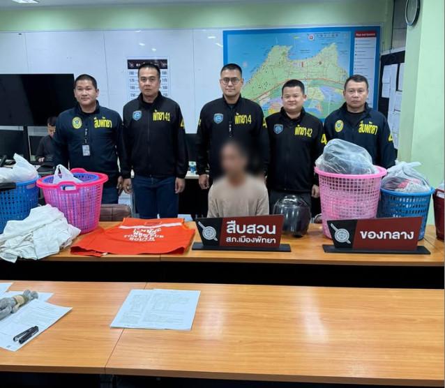 ต่อมาในช่วงบ่ายวันที่ 5 กุมภาพันธ์ 2569 พ.ต.อ.เอนก สระทองอยู่ ผู้กำกับการ สภ.เมืองพัทยา พร้อมด้วย พ.ต.ท.อรุษ สภานนท์ รองผู้กำกับการสืบสวน และเจ้าหน้าที่ชุดสืบสวน ร่วมกันจับกุมตัว ชาย อายุ 48 ปี พร้อมของกลางเป็นเสื้อผ้าจำนวนมาก และตะกร้าผ้าที่ใช้ก่อเหตุ