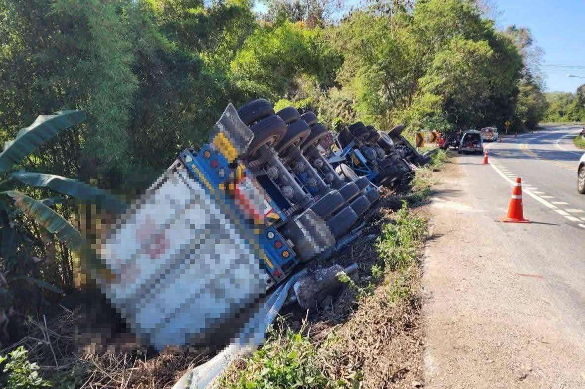 เวลา 13.30 น. วันที่ 5 กุมภาพันธ์ 2569 รับแจ้งจาก สมาคมกู้ภัยลำปาง มีอุบัติเหตุรถเทรลเลอร์พลิกคว่ำ และมีผู้เสียชีวิตติดอยู่ภายในยานพาหนะ ริมถนนสายลี้ - เถิน ช่วงทางโค้ง ในพื้นที่ บ้านห้วยหญ้าไซ ต.ดงดำ อ.ลี้ จ.ลำพูน