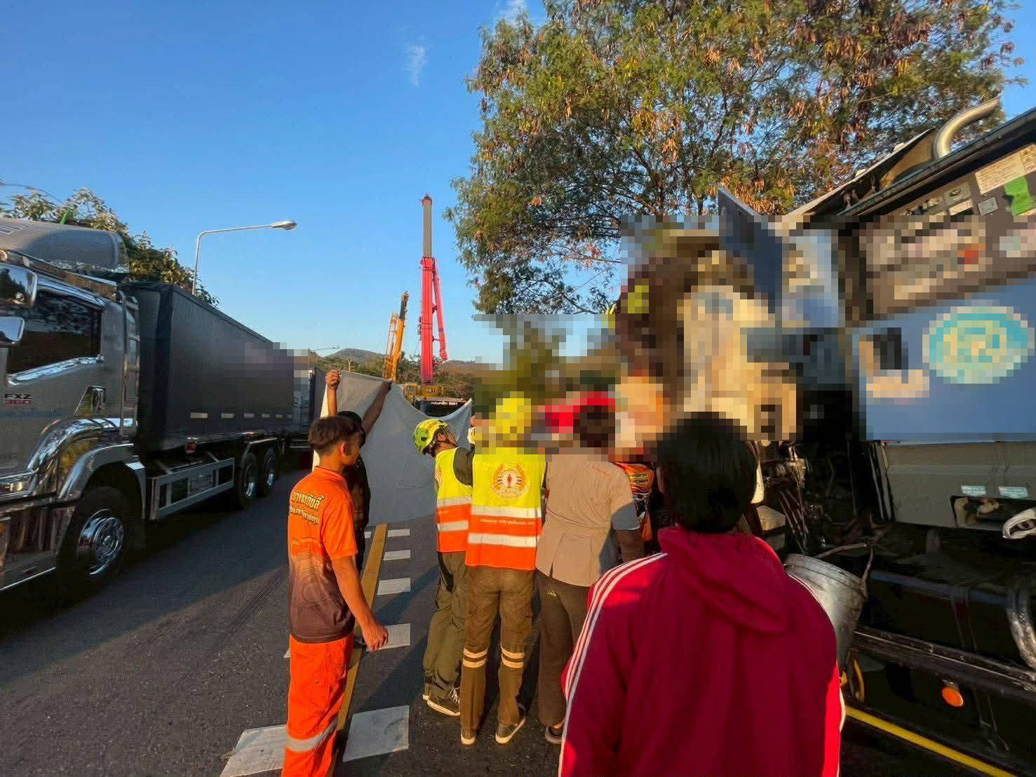ที่เกิดเหตุ พบรถเทรลเลอร์ อีซูซุ สีขาว ป้ายทะเบียน ชลบุรี ลักษณะพลิกตะแคงอยู่ข้างทาง ตรวจสอบภายในยานพาหนะ พบร่างของผู้เสียชีวิตชาย 1 ราย ทางอาสาสมัครกู้ภัยลำปาง ร่วมกับหน่วยงานในจังหวัดลำปาง และจังหวัดลำพูนใช้อุปกรณ์ตัดถ่างเพื่องัดรถ และนำร่างผู้เสียชีวิตออกมาได้