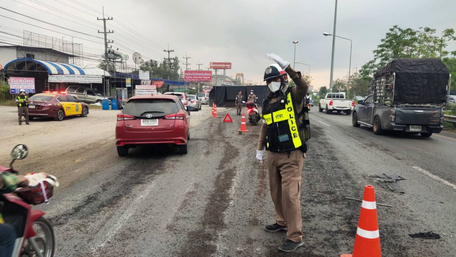 หนุ่มขับขี่รถจักรยานยนต์ล้มคว่ำ ลื่นไถลไปชนกับรถกระบะ เสียชีวิตกลางถนนสังฆประชา