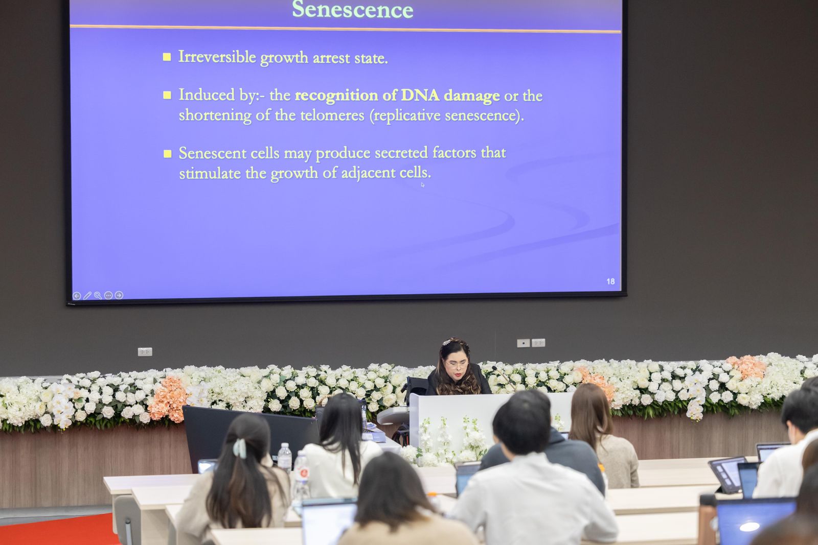 สำหรับ เนื้อหาเรื่องการเกิดโรคมะเร็งในครั้งนี้ ทรงบรรยายถึงการควบคุมการเพิ่มจำนวนของเซลล์และการเกิดเซลล์ตาย และเมแทบอลิซึมของเซลล์มะเร็ง ซึ่งปกติแล้วร่างกายมนุษย์จะมีระบบควบคุมการทำงานของเซลล์อย่างรัดกุม เซลล์จะเติบโต แบ่งตัว และตายไปตามเวลาที่เหมาะสม เพื่อรักษาสมดุลของร่างกาย กระบวนการนี้เรียกว่า “วัฏจักรของเซลล์” ซึ่งมี ๔ ระยะด้วยกัน โดยในแต่ละระยะจะมี “จุดตรวจสอบ” คอยควบคุมความถูกต้อง หากพบความผิดปกติ เซลล์จะหยุดการแบ่งตัว หรือเข้าสู่กระบวนการตายตามธรรมชาติที่เรียกว่า “อะพอพโตซิส (apoptosis) นอกจากนี้ เมื่อเซลล์มีอายุมากขึ้น ก็จะเข้าสู่ภาวะ “ชราภาพของเซลล์” หรือ “ซีเนสเซนส์ (senescence)” ทำให้หยุดแบ่งตัว เพื่อป้องกันความเสี่ยงที่จะเกิดความผิดพลาด
