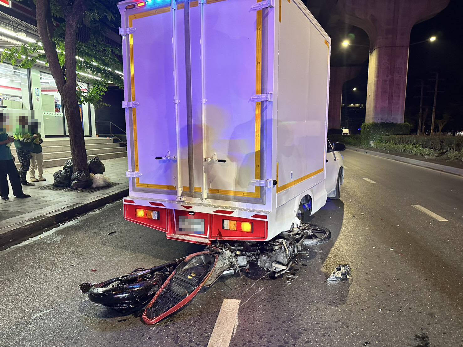 หนุ่มวัย 27 ปีขี่รถจักรยานยนต์ชนกับรถเทรลเลอร์ เสียชีวิตริมถนนทางรถไฟสายเก่า
