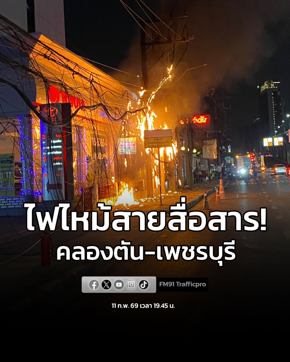 11 ก.พ. 69 เวลา 19.45 น. เหตุไฟฟ้าลัดวงจรที่หม้อแปลง ใกล้เคียงโรงพยาบาลเพชรเวช ถนนเพชรบุรีตัดใหม่ เจ้าหน้าที่สถานีดับเพลิงและกู้ภัยบางกะปิถึงที่เกิดเหตุ เพลิงกำลังลุกไหม้สายไฟฟ้า เจ้าหน้าที่อยู่ระหว่างการใช้น้ำ