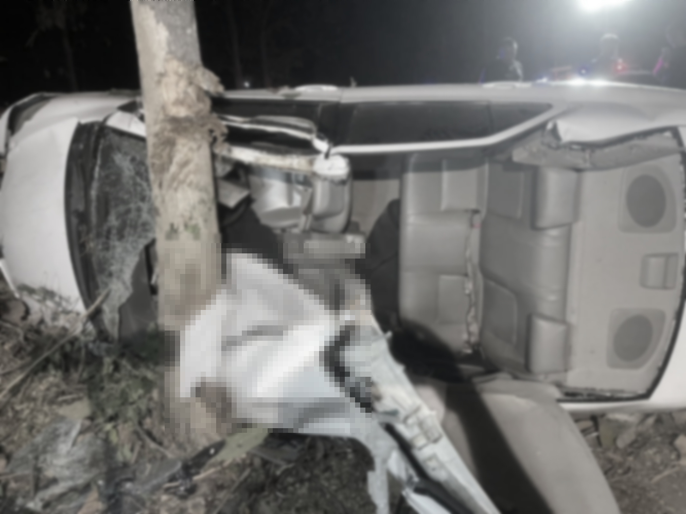 รถนั่งส่วนบุคคล เสียหลักฟาดต้นไม้ข้างทาง มีผู้บาดเจ็บ 2 รายและเสียชีวิต 2 ราย จ.กาญจนบุรี