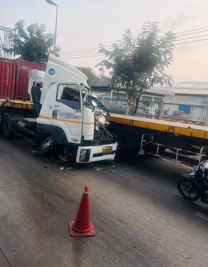 07.24 น. ถนนวงแหวนอุตสาหกรรม เบี่ยงมาจากปู่เจ้าสมิงพรายได้เล็กน้อย อุบัติเหตุ รถบรรทุกชนท้ายกัน 2 คัน เลนซ้าย รถชะลอตัวแล้ว #รายงานจราจร #รถติด #อุบัติเหตุ #FM91