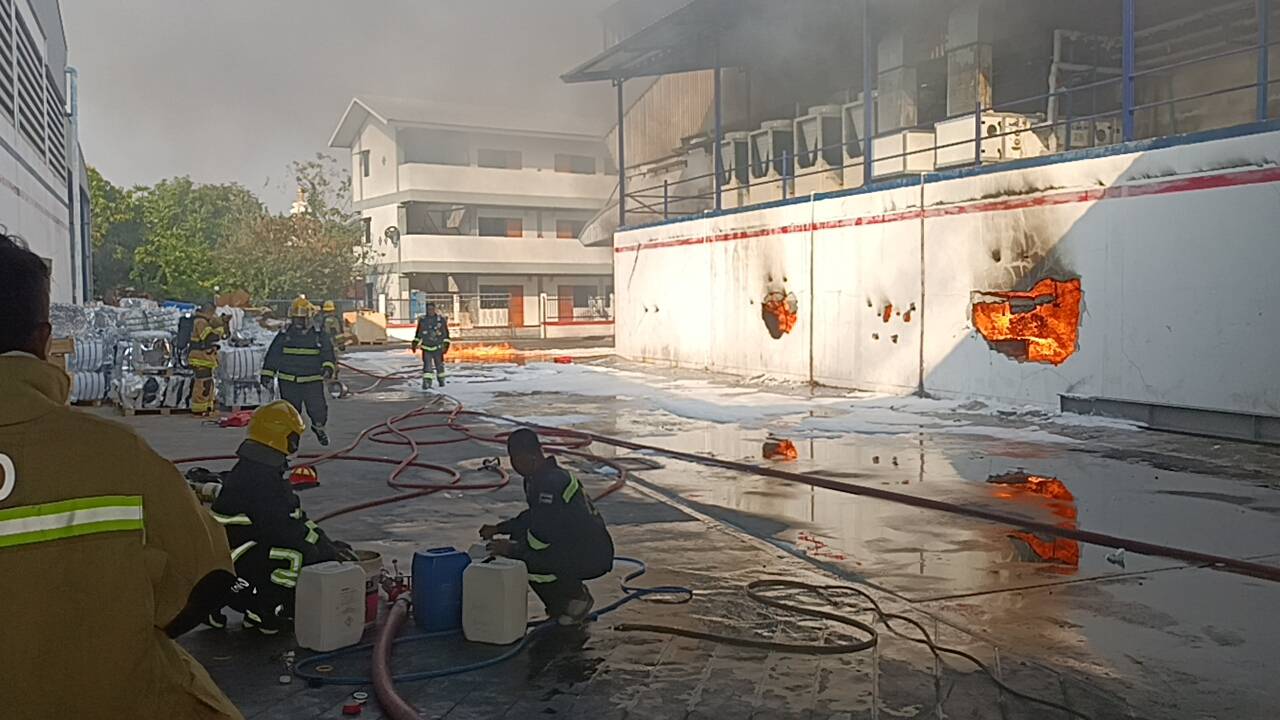 ที่เกิดเหตุมีแสงเพลิงเกิดขึ้นที่ตัวอาคารโรงงานด้านข้าง ซึ่งเป็นสถานที่ไลน์ผลิต มีเครื่องจักรและน้ำยาเคมีไวไฟจำนวนมาก แสงเพลิงลุกเต็มห้องภายในตัวอาคาร เจ้าหน้าที่ต้องประสานขอรถดับเพลิง และหน่วยบรรเทาสาธารณภัยที่ใกล้เคียง รวมถึงเจ้าหน้าที่และอาสาสมัครมูลนิธิร่วมกตัญญู ระดมกำลังนักดับเพลิง และรถดับเพลิงจำนวนมากเข้าระงับเหตุ
