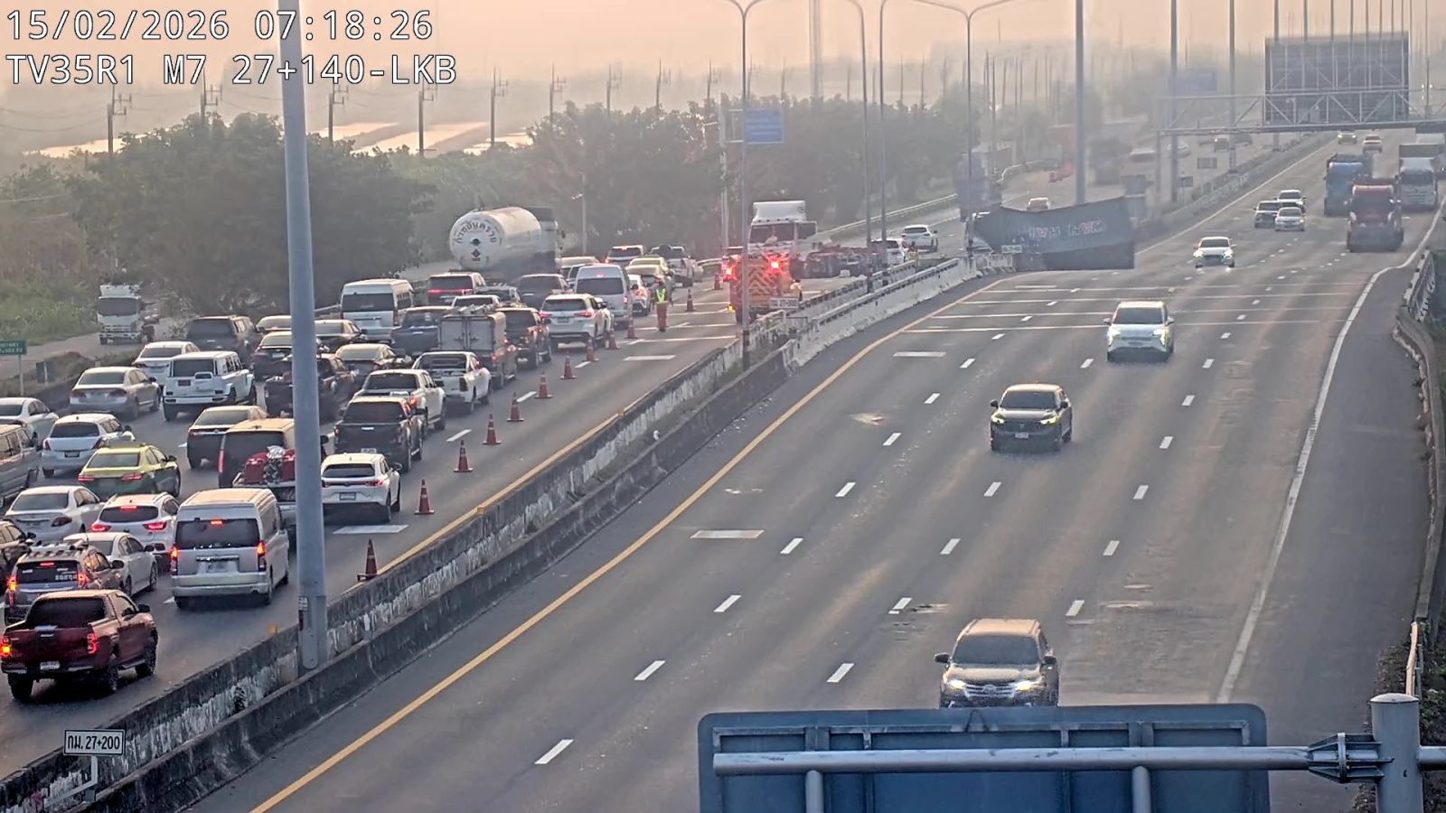 อุบัติเหตุ รถติดแล้ว! ถนนมอเตอร์เวย์ (ทล.7) ช่วง กม.27+400 อุบัติเหตุ รถบรรทุกพลิกตะแคง กีดขวางช่องทางขวา ของทั้งขาเข้า และขาออก รถติดขัดแล้ว #รายงานจราจร #รถติด #อุบัติเหตุ #FM91