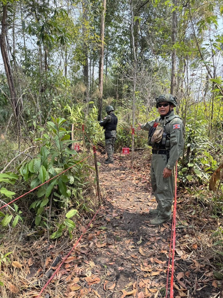 พลเรือตรี ปารัช รัตนไชยพันธ์ โฆษกกองทัพเรือ เปิดเผยว่าหน่วยปฏิบัติการทุ่นระเบิดด้านมนุษยธรรม กองทัพเรือ (นปท.ทร.) รายงานว่า จากการปฏิบัติการยึดคืนพื้นที่ตามแผน “ตราดพิฆาตไพรี” และการเข้าเคลียร์พื้นที่ให้ปลอดภัย เมื่อวาน (14 กุมภาพันธ์ 2569) นปท.ทร. ได้ตรวจพบทุ่นระเบิดสังหารบุคคลชนิด PMN-2 สภาพใหม่ จำนวน 6 ทุ่น ในพื้นที่บ้านชำราก อำเภอเมือง จังหวัดตราด ซึ่งเป็นพื้นที่อธิปไตยของประเทศไทย จากการตรวจสอบพบหลักฐานชัดเจนว่า ทุ่นระเบิดดังกล่าวถูกนำมาวางโดยฝ่ายตรงข้ามเมื่อไม่นานมานี้ ด้วยสภาพที่ปรากฏนั้นเห็นได้ชัดเจนว่าไม่ใช่ทุ่นระเบิดเก่าที่ตกค้างแต่อย่างใด นอกจากนี้ ในพื้นที่ใกล้เคียงยังตรวจพบทุ่นระเบิดและวัตถุระเบิดตกค้างเพิ่มเติม ได้แก่ ทุ่นระเบิดสังหารบุคคลชนิด PMN-1 จำนวน 3 ทุ่น และชนิด POMZ จำนวน 1 ทุ่น ระหว่างการเคลียร์พื้นที่และพัฒนาเส้นทางทางยุทธวิธีตามแนวชายแดน