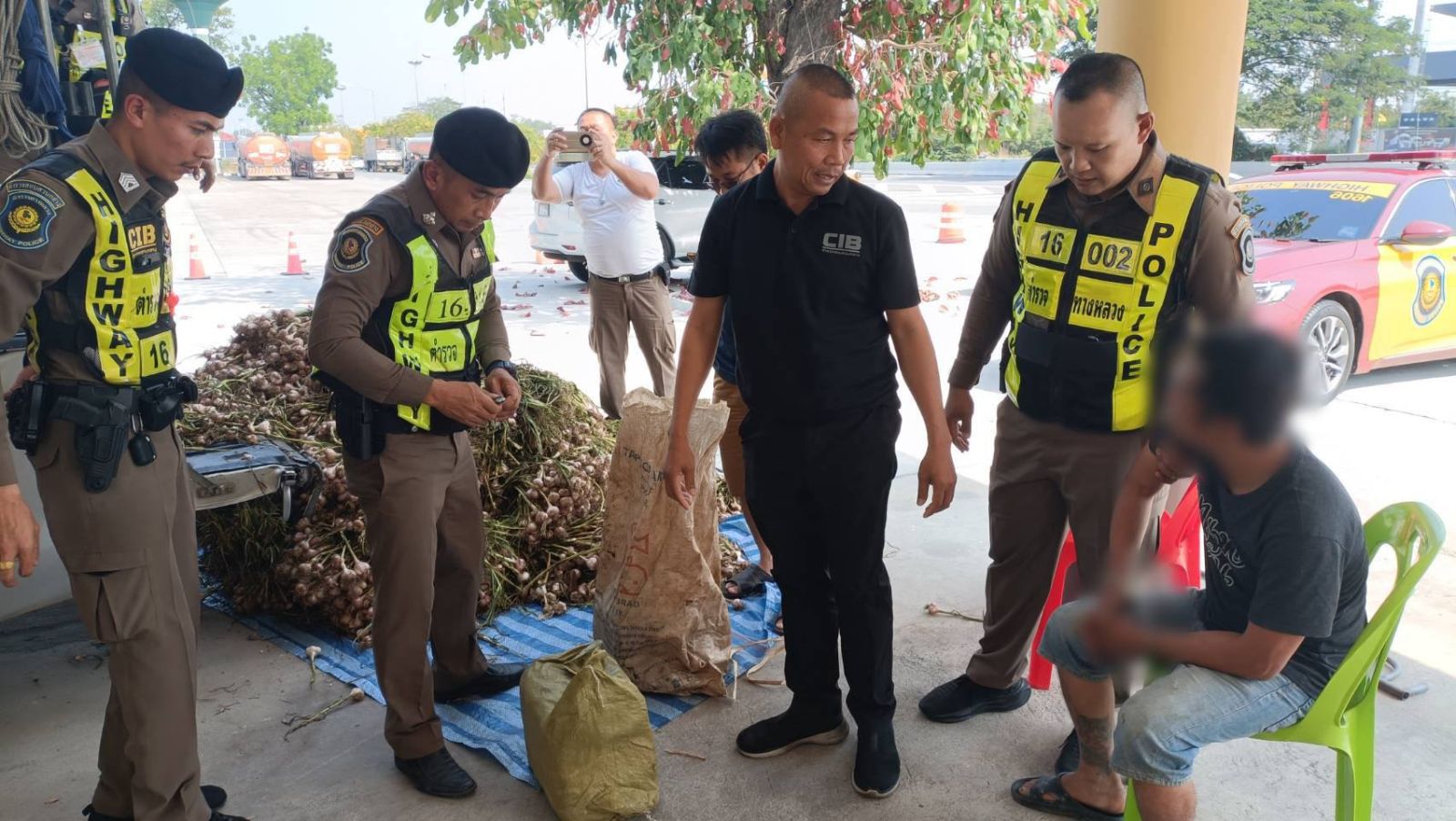 จากการสอบถาม นายธี ให้การว่าได้ขนกระเทียม มาจาก จ.สุโขทัย แต่ตำรวจไม่ปักใจเชื่อ เมื่อตรวจสอบสิ่งของที่อยู่ท้ายกระบะออกและนำกองกระเทียมลงจากรถ พบยาบ้าประมาณ 2,194,000 เม็ด และไอซ์ บรรจุห่อพลาสติกทึบแสงสีเขียว(ถุงชาจีน) 26 กิโลกรัม