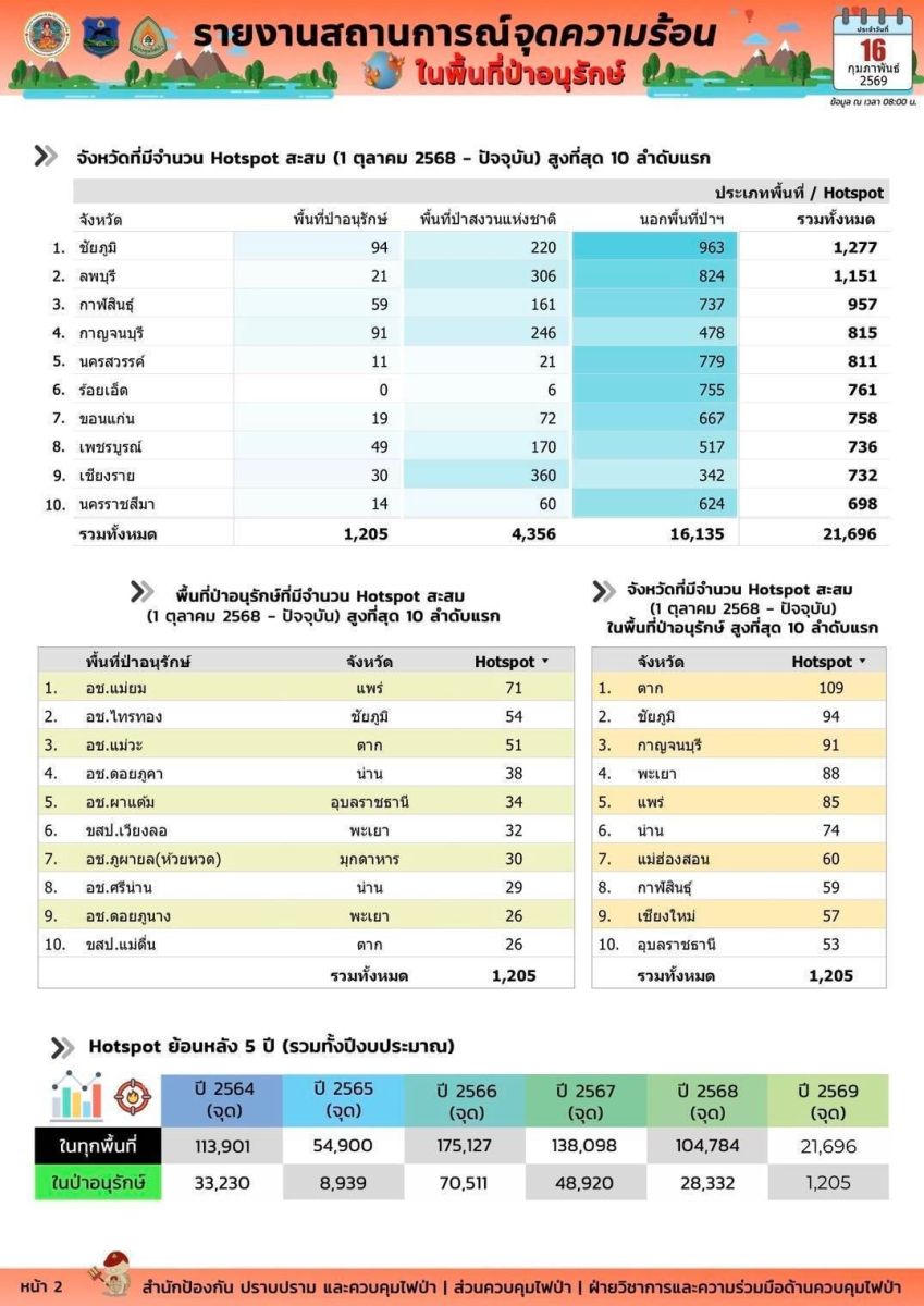 สถานการณ์ไฟป่าในจังหวัดกาญจนบุรี​มีแนวโน้มรุนแรงขึ้น หลังพบจุดความร้อน (Hotspot) กระจายตัวเป็นวงกว้าง ล่าสุด นายสุชาติ ชมกลิ่น รัฐมนตรีว่าการกระทรวงทรัพยากรธรรมชาติและสิ่งแวดล้อม (รมว.ทส.) สั่งการด่วนให้กรมอุทยานแห่งชาติ สัตว์ป่า และพันธุ์พืช ระดมสรรพกำลัง ยุทโธปกรณ์ และกระทรวงทรัพยากรธรรมชาติและสิ่งแวดล้อม ส่งเฮลิคอปเตอร์เข้าสนับสนุนภารกิจดับไฟป่า เพื่อปกป้องพื้นที่ป่าอนุรักษ์ชั้นในอย่างเต็มกำลัง