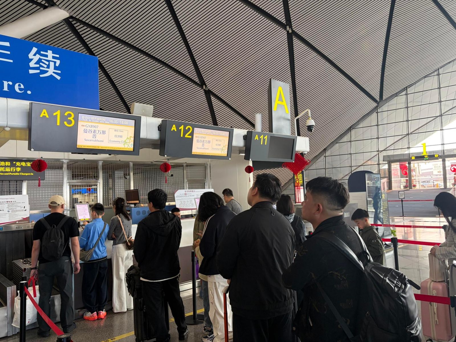 การบริการเที่ยวบินโดยสารตรงสู่ไทยเป็นอีกปัจจัยสนับสนุนการท่องเที่ยวไทยในช่วงเทศกาลตรุษจีนปีนี้ เส้นทางบินหนานหนิง-กรุงเทพฯ รับรองผู้โดยสารเพิ่มขึ้นอย่างต่อเนื่องตั้งแต่จีนและไทยดำเนินนโยบายฟรีวีซ่าซึ่งกันและกันในเดือนมีนาคม 2024 และช่วงชุนอวิ้นปีนี้เพิ่มขึ้นร้อยละ 30 เมื่อเทียบกับปีก่อนหน้า ขณะจำนวนเที่ยวบินตรงหนานหนิง-กรุงเทพฯ เพิ่มขึ้นเป็น 3 เที่ยวต่อวันในช่วงชุนอวิ้น ครอบคลุมการออกเดินทางระหว่างช่วงเช้าถึงช่วงเย็น และใช้เวลาบินราว 2 ชั่วโมง 20 นาทีเท่านั้น