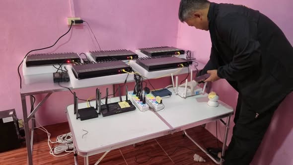 ผลการตรวจค้นพบอุปกรณ์ “ซิมบ็อกซ์ (SIM Box)” จำนวน 8 เครื่อง ซุกซ่อนอยู่ภายในห้องเช่า 2 ห้อง พร้อมของกลางประกอบด้วย เราเตอร์ WiFi และ อุปกรณ์คอมพิวเตอร์ควบคุมระบบ