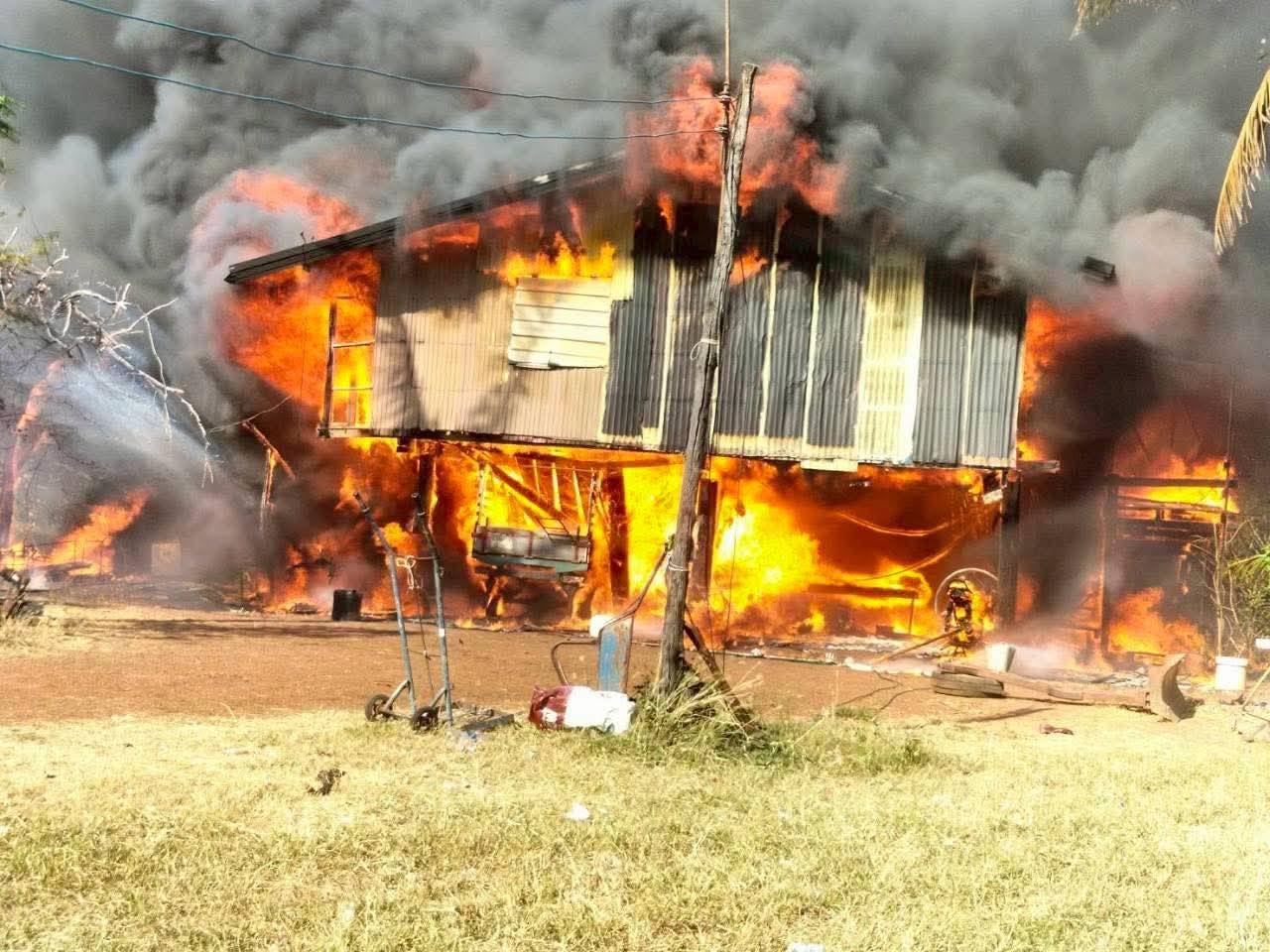 ที่เกิดเหตุ ลักษณะเป็นบ้านไม้ยกพื้นสูง เพลิงกำลังโหมลุกไม้รุนแรง ทางเจ้าหน้าที่พร้อมด้วยรถดับเพลิงระดมใช้หัวฉีดน้ำเพื่อสกัดเพลิง จนสามารถควบคุมและเพลิงสงบลงในเวลาต่อมา