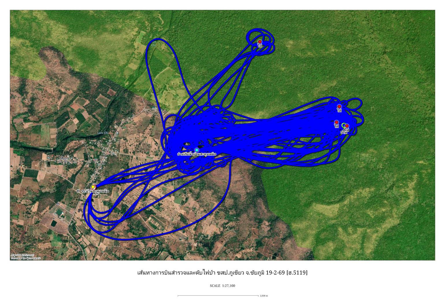 โดยอากาศยาน ฮ.ทส. 5119 ปฏิบัติภารกิจบินสำรวจสถานการณ์ไฟป่าและแหล่งน้ำ ก่อนดำเนินการบินทิ้งน้ำสนับสนุนการดับไฟร่วมกับเจ้าหน้าที่เขตรักษาพันธุ์สัตว์ป่าภูเขียวและชุดปฏิบัติการไฟป่า รวมกำลังภาคพื้นกว่า 30 นาย