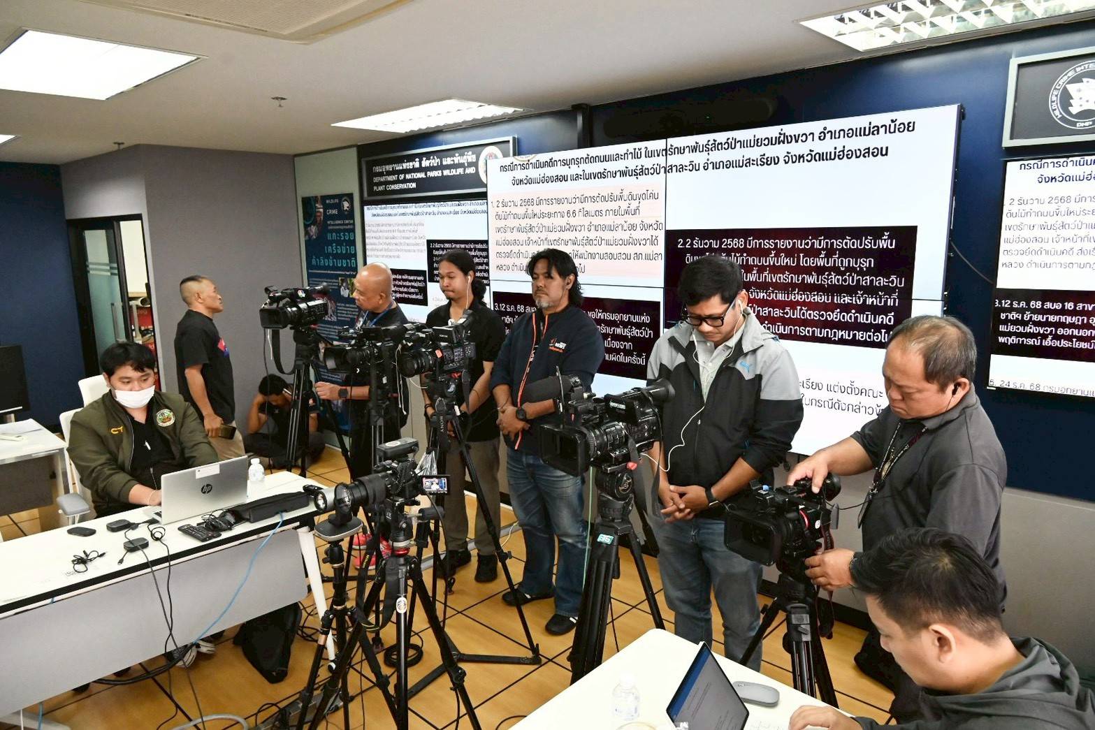 20 กุมภาพันธ์ 2569 เวลา 10.00 น. ห้องศูนย์ข่าวกรองอาชญากรรมสัตว์ป่า (WCC) ชั้น 12 อาคารสืบ นาคะเสถียร กรมอุทยานแห่งชาติฯ นายอรรถพล เจริญชันษา อธิบดีกรมอุทยานแห่งชาติ สัตว์ป่า และพันธุ์พืช แถลงความคืบหน้ากรณีการดำเนินคดีกลุ่มขบวนการลักลอบตัดไม้และขุดเจาะถนนในพื้นที่ป่าอนุรักษ์ จังหวัดแม่ฮ่องสอน โดยระบุว่ากรมอุทยานฯ ได้ติดตามเรื่องนี้มาอย่างต่อเนื่องตั้งแต่ช่วงเดือนกันยายน 2568 หลังได้รับรายงานจากสำนักบริหารพื้นที่อนุรักษ์ที่ 16 สาขาแม่สะเรียง ว่ามีการลักลอบทำถนนลำลองขนาดกว้างประมาณ 3 เมตร ผ่านพื้นที่เขตรักษาพันธุ์สัตว์ป่าแม่ยวมฝั่งขวา เป็นระยะทาง 6.6 กิโลเมตร และเขตรักษาพันธุ์สัตว์ป่าสาละวิน อีกประมาณ 1.2 กิโลเมตร ซึ่งจากการเข้าตรวจสอบพื้นที่พบไม้มีค่าถูกตัดโค่นรวมกว่า 329 ท่อน คิดเป็นปริมาตร 156.94 ลูกบาศก์เมตร เจ้าหน้าที่จึงได้ดำเนินการตรวจยึดและตั้งคณะกรรมการสอบสวนข้อเท็จจริงจนนำไปสู่การตั้งคณะกรรมการสอบวินัยร้ายแรงแก่เจ้าหน้าที่ที่เกี่ยวข้องในพื้นที่ทั้งหมด