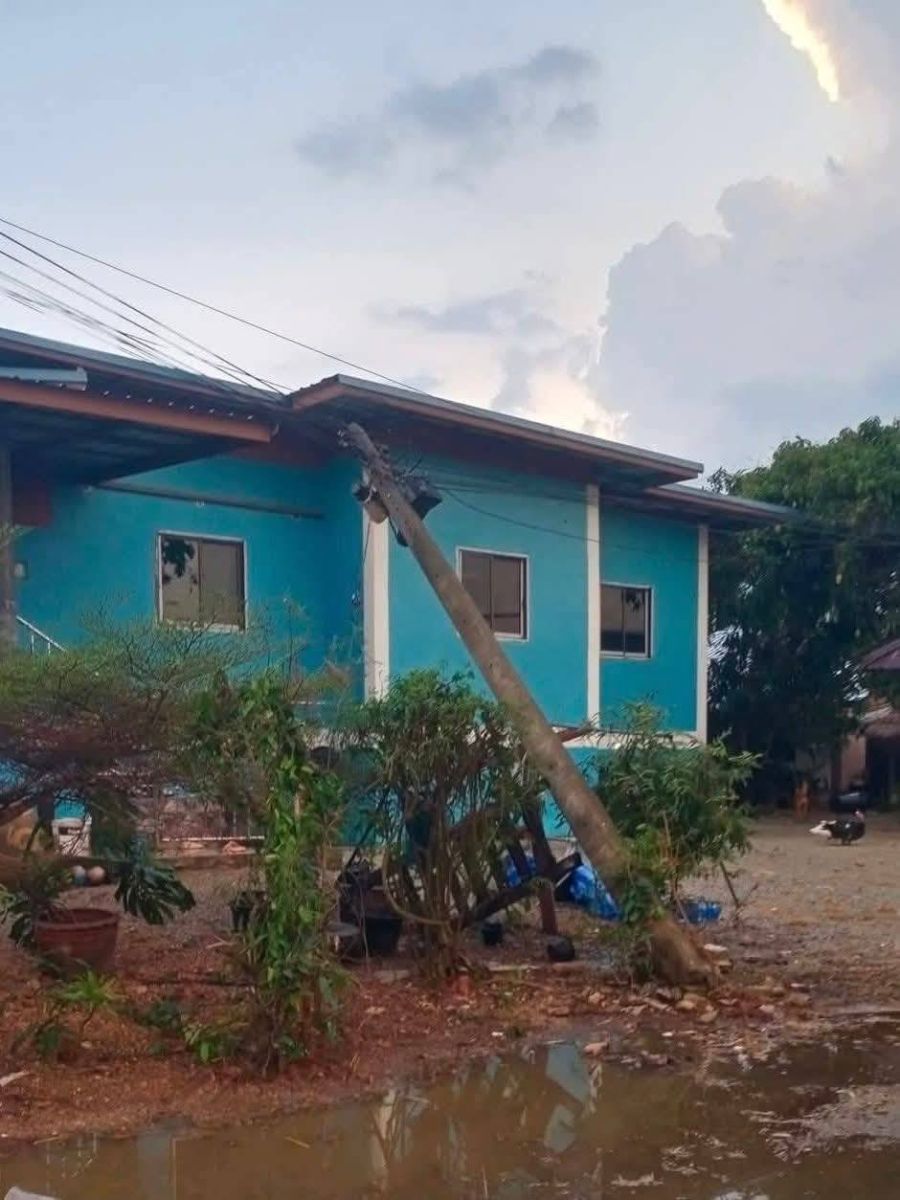 พายุฤดูร้อนพัดถล่มสนามชัยเขต หลังคาปลิวว่อน เสาไฟฟ้าหักโค่นทับบ้าน เสียหายหลายหลัง จ.ฉะเชิงเทรา