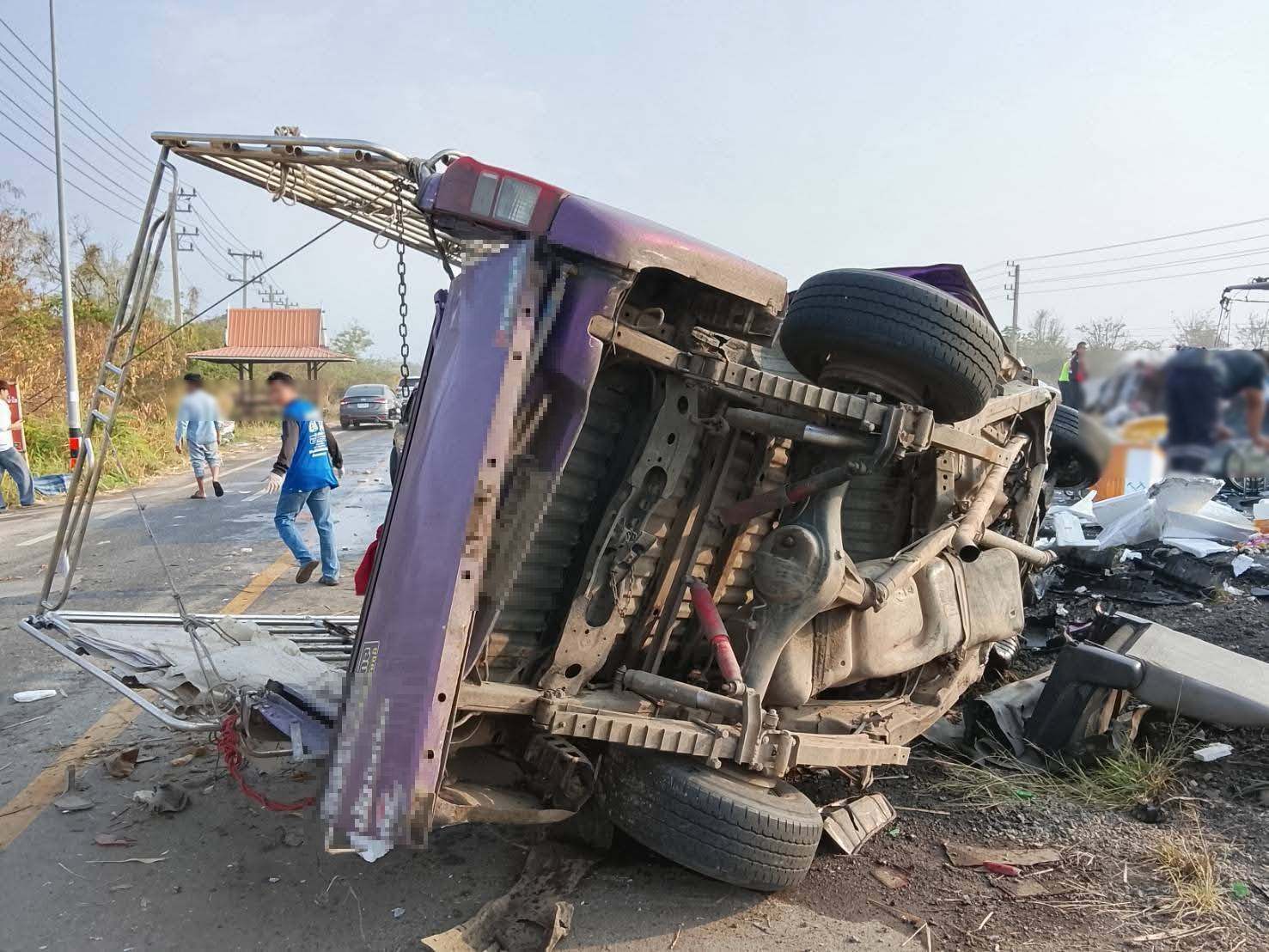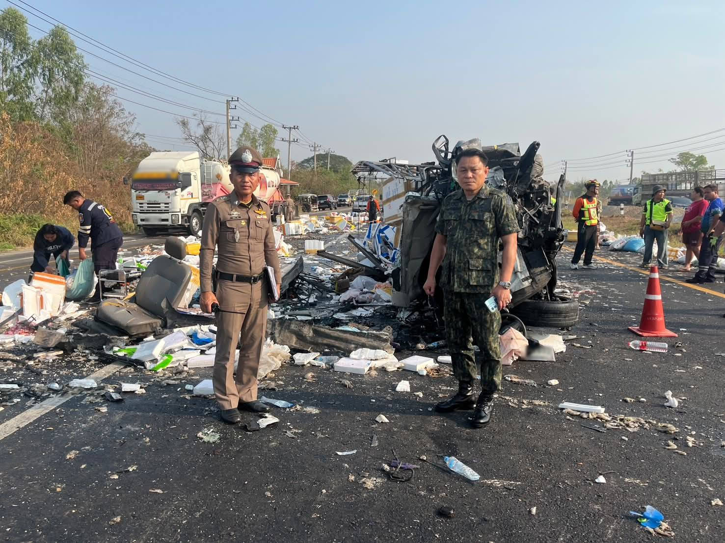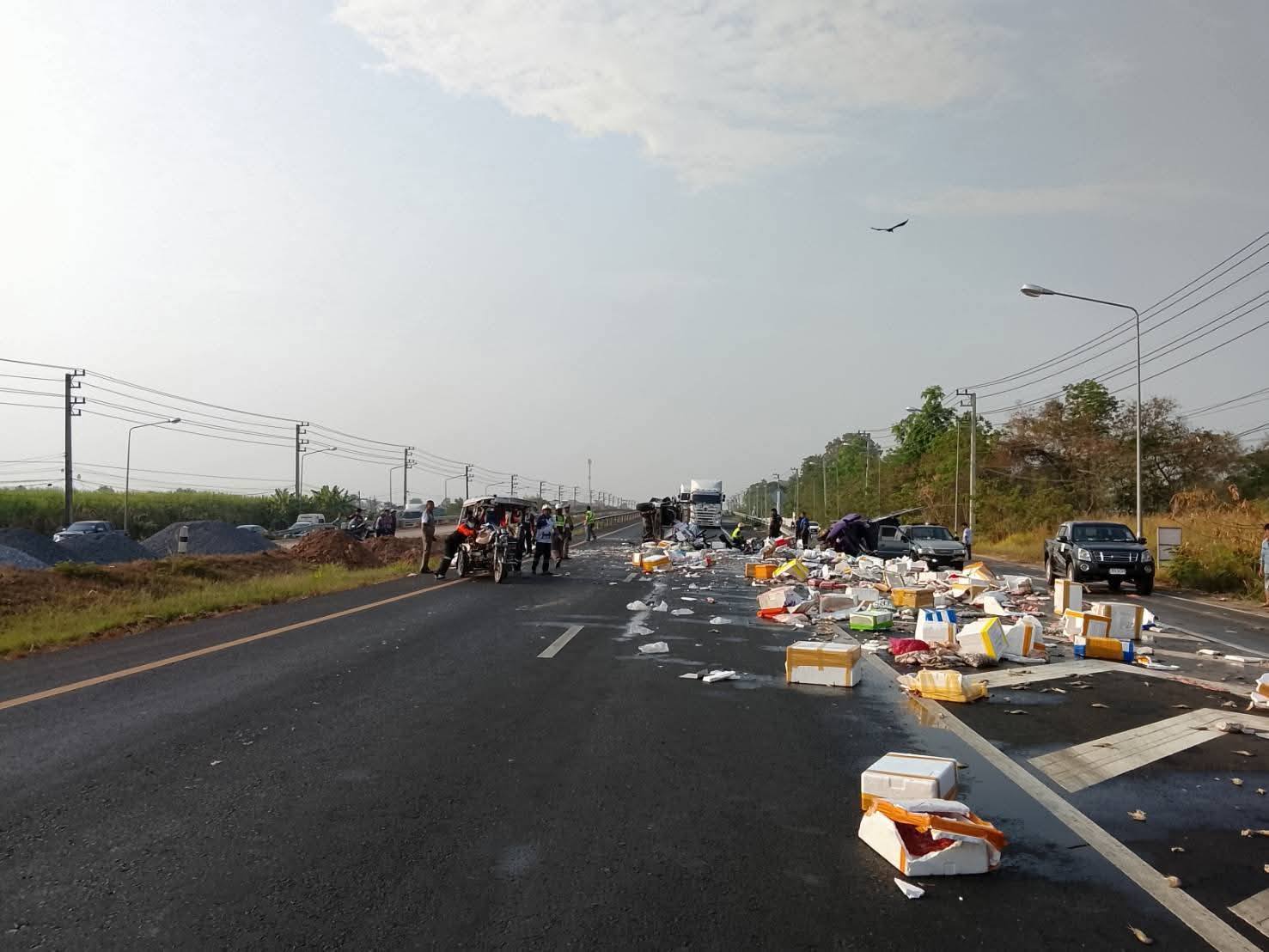 ที่เกิดเหตุ พบรถยนต์กระบะคันแรก เป็นยี่ห้อโตโยต้า สีขาว หมายเลขทะเบียน กรุงเทพมหานคร บรรทุกอาหารทะเล มีผู้ได้รับบาดเจ็บติดภายในจำนวน 2 ราย รายแรก เป็นชายไทย อายุ 37 ปี ได้รับบาดเจ็บเล็กน้อยรู้สึกตัวดี รถกู้ชีพเทศบาลตำบลธาตุทองนำส่ง รพ.ภูเขียว รายที่สอง เป็นหญิงไทย อายุ 29 ปี ได้รับบาดเจ็บมีอาการหมดสติปลุกไม่ตื่น รถพยาบาลโรงพยาบาลภูเขียวเฉลิมพระเกียรตินำส่ง รพ.ภูเขียว และเสียชีวิตในเวลาต่อมา