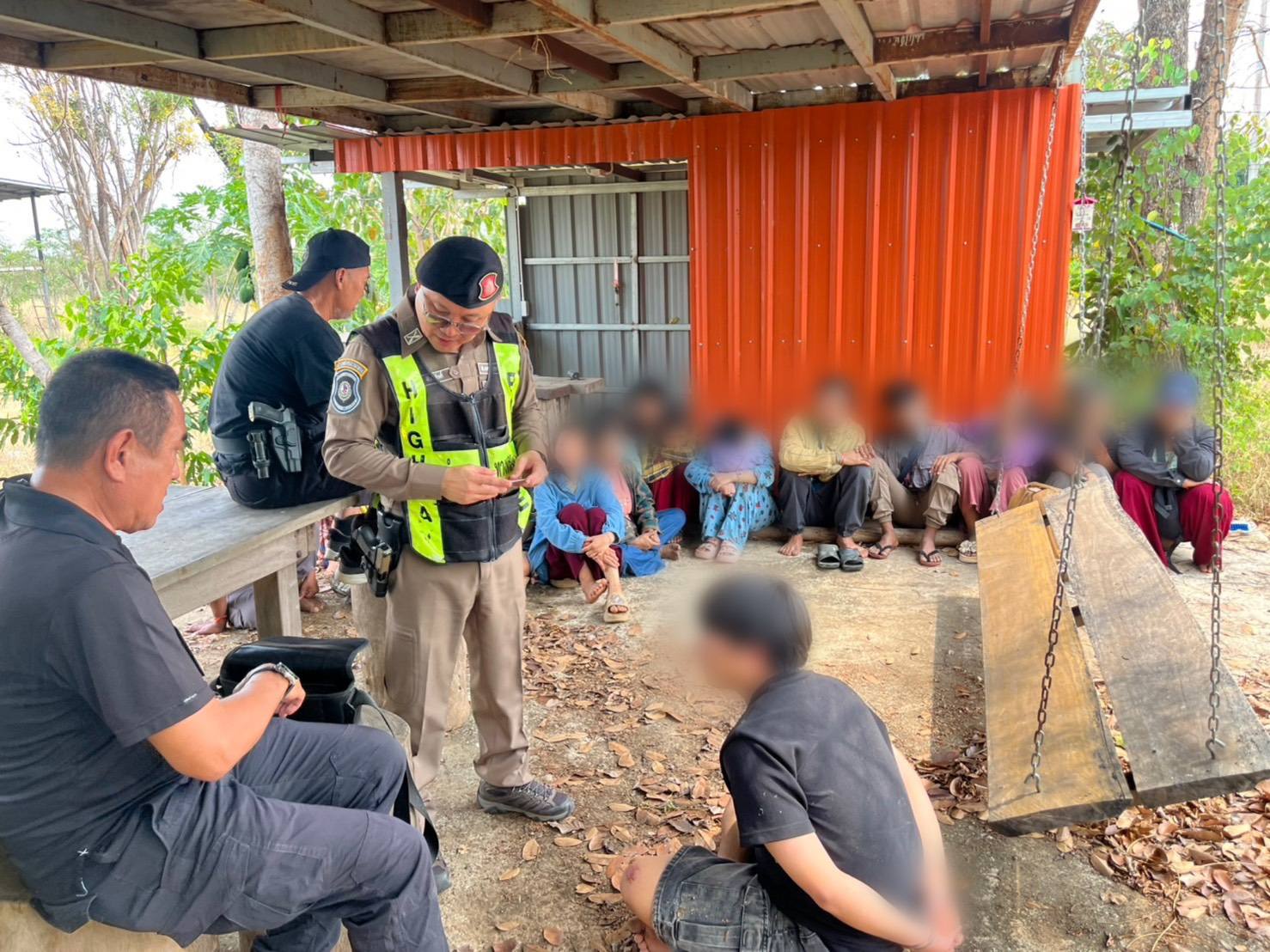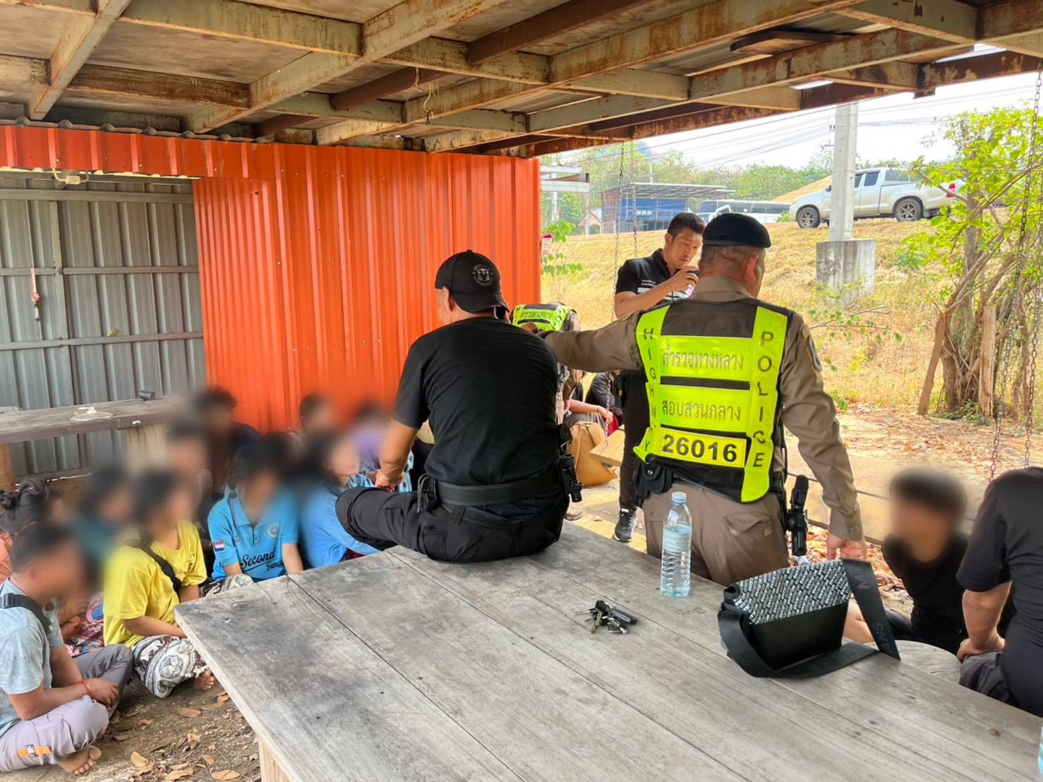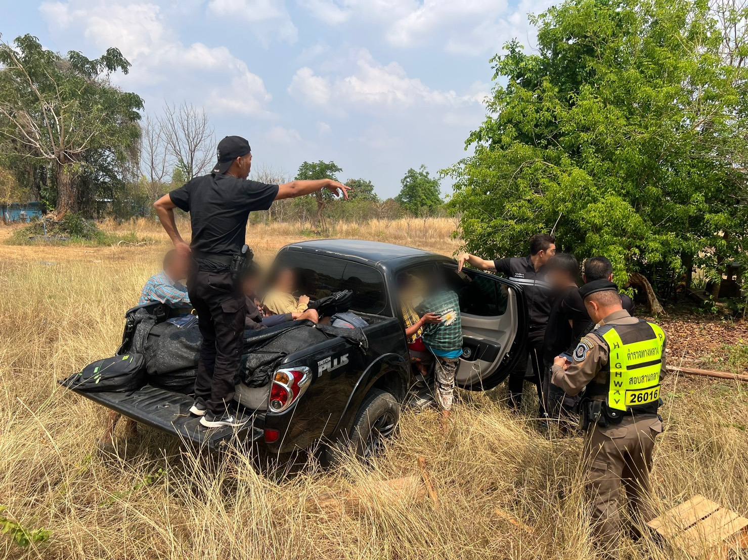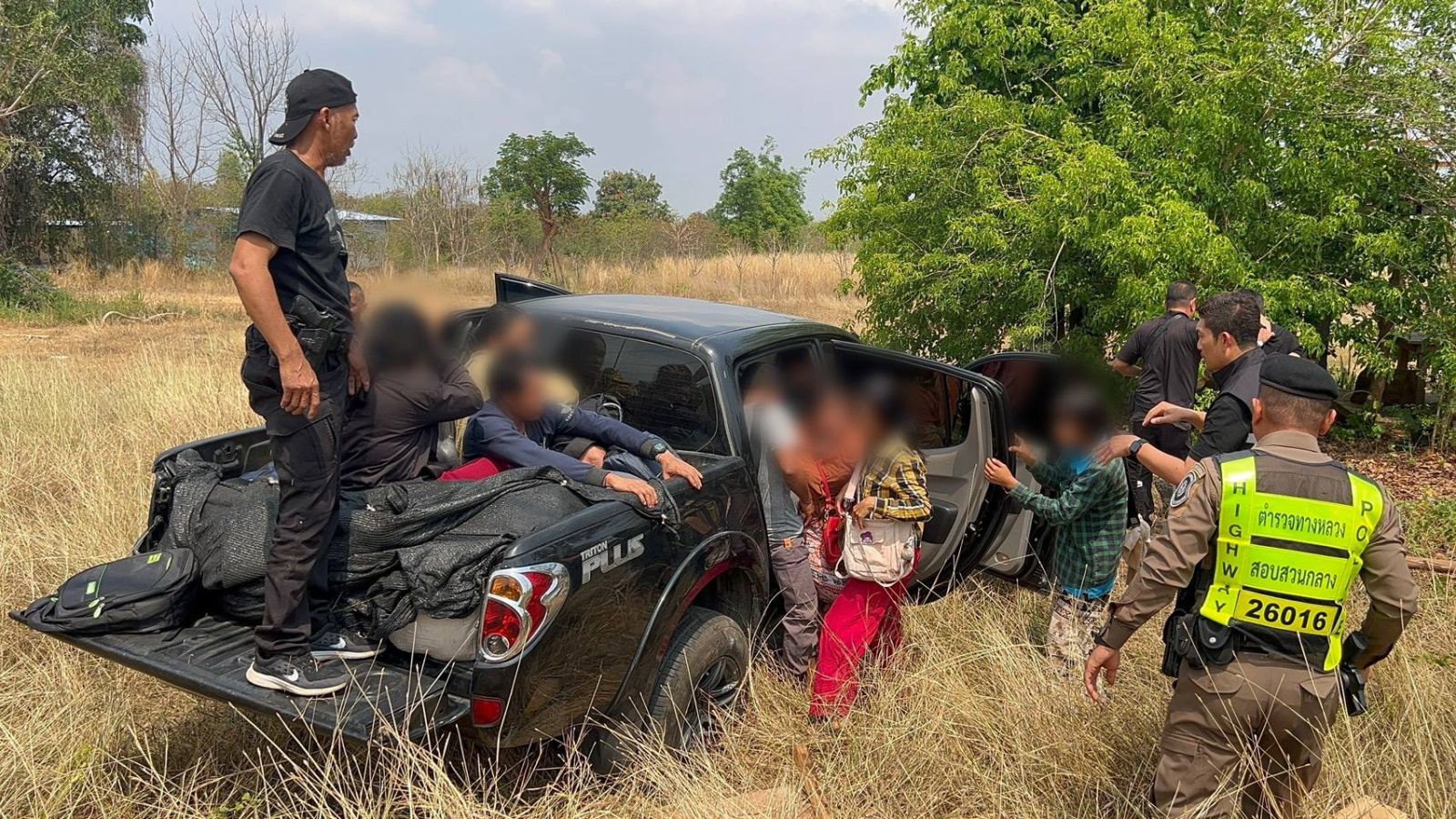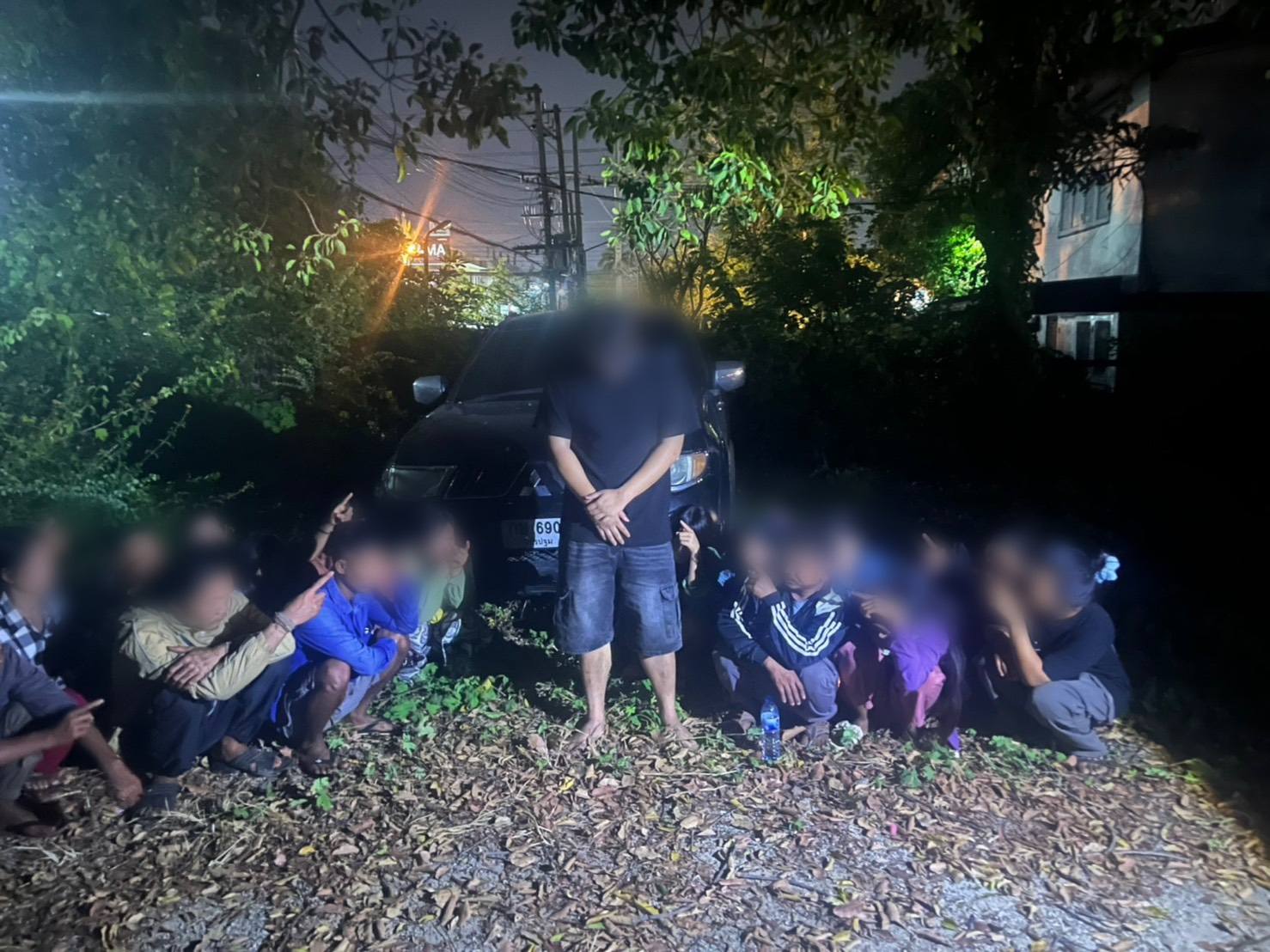 ตรวจสอบพบคนขับ 1 ราย พร้อมแรงงานต่างด้าวสัญชาติเมียนมาอีก 14 ราย โดยนั่งอัดแน่นภายในห้องโดยสาร และบางส่วนลักลอบนอนอยู่บริเวณกระบะท้าย ใช้ผ้าตาข่ายสีดำปิดบังสายตาเจ้าหน้าที่ พร้อมกระเป๋าสัมภาระจำนวนหนึ่ง