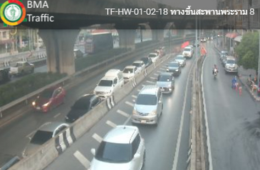 - สะพานพระราม 8 ขาเข้า ท้ายแถวสะสมอยู่ที่แยกอรุณอมรินทร์
