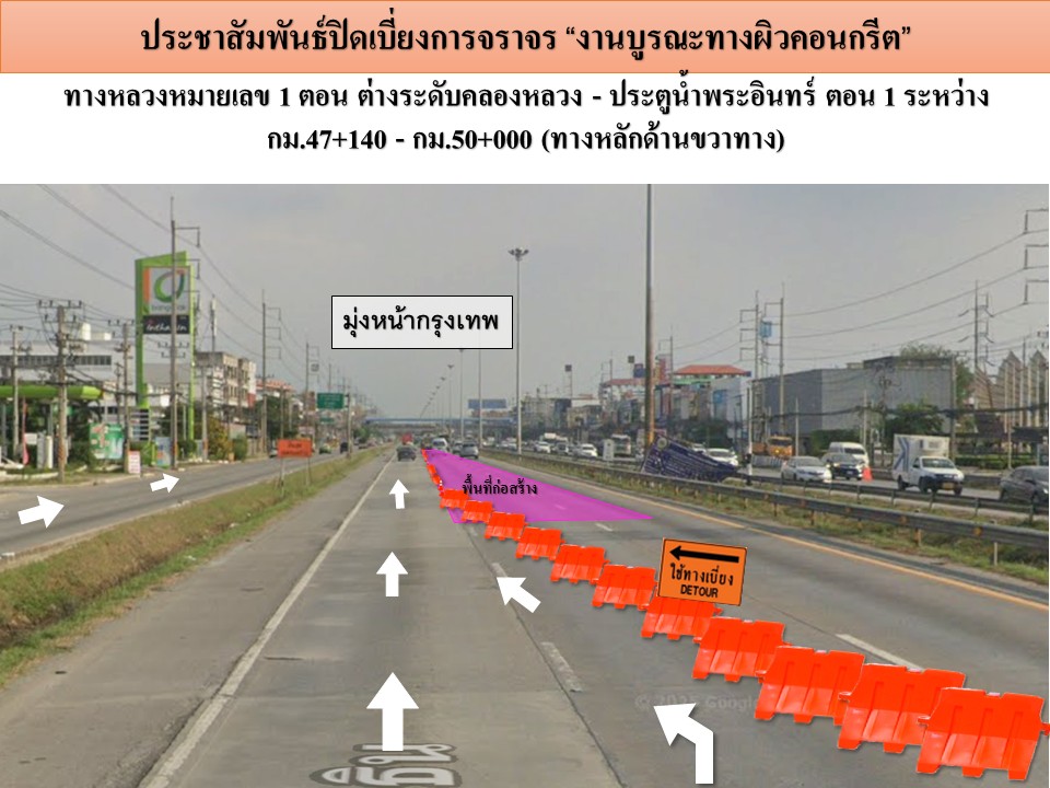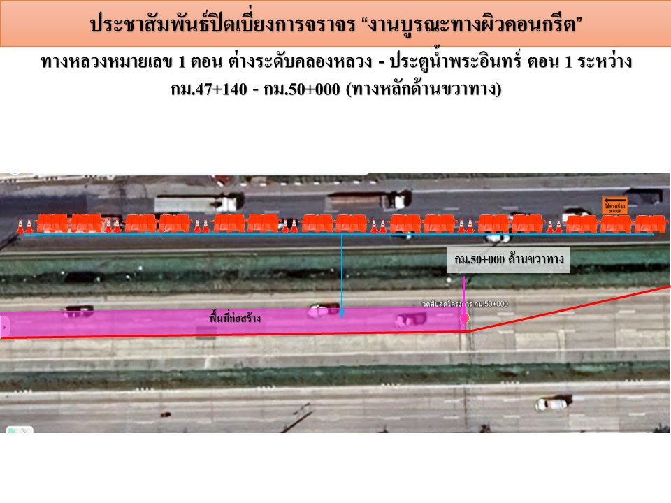 สภ.พระอินทร์ราชา เทศบาลตำบลพระอินทร์ราชา อยุธยา ปชส. ข่าวจราจร จากแขวงทางหลวงปทุมธานี จะดำเนินการซ่อมผิวจราจรคอนกรีต บนถนนพหลโยธิน ช่องทางหลัก เลนขวา (ขาเข้า) กทม. บริเวณหลักกิโลเมตรที่ 47+140 ถึง กม.50 ในระหว่างวันที่ 12 กุมภาพันธ์ 2569 – 15 มีนาคม 2569 มีผลให้รถจากแยกบางปะอิน ไปทางวัดคุณหญิงส้มจีนติดขัดสะสม